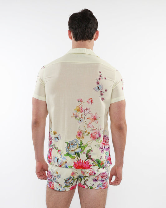 Postmarc Cream/Multi Printed Woven Modal SS Shirt