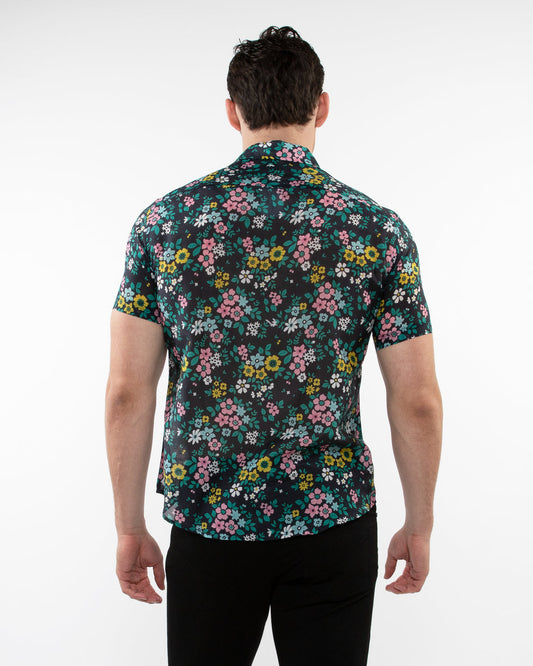 Post Marc Navy/Teal Floral Cotton Silk SS Shirt
