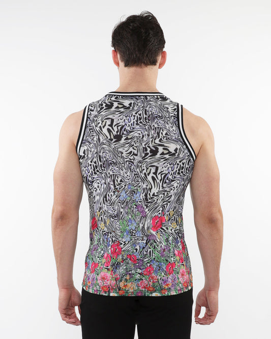 ST33le Black/Multi Jungle Printed Mesh Tank