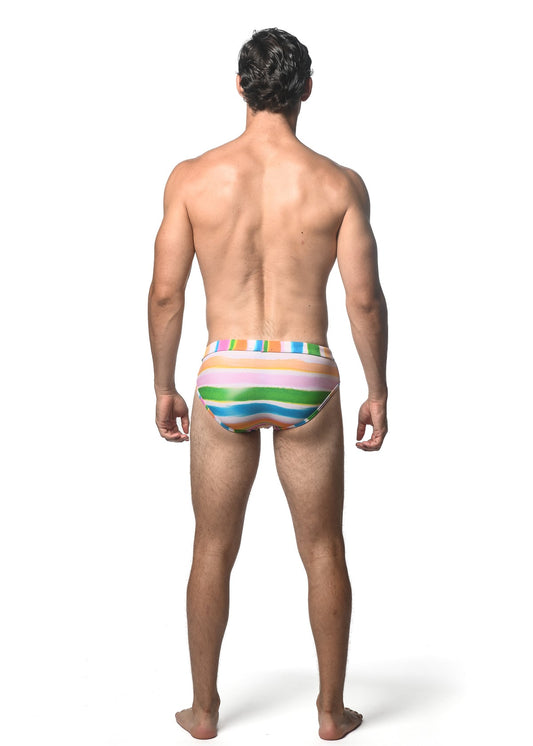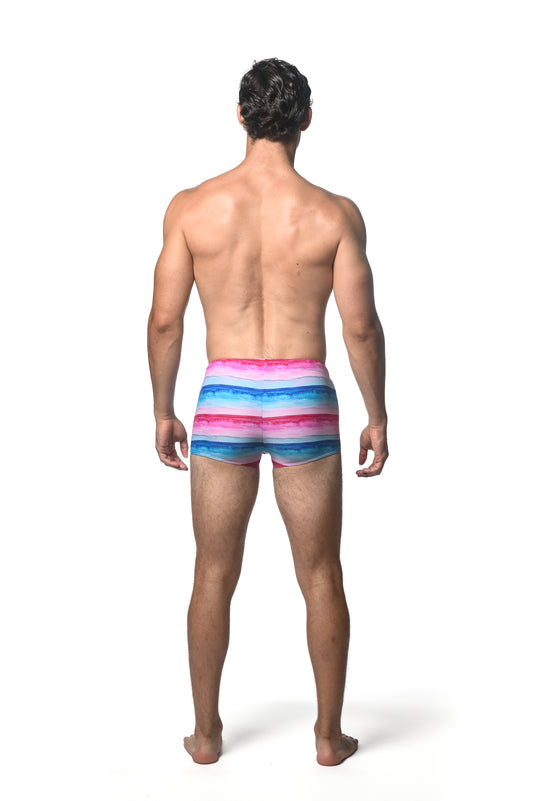 St33le Fuchsia Cobalt Stripe Printed Swim Brief