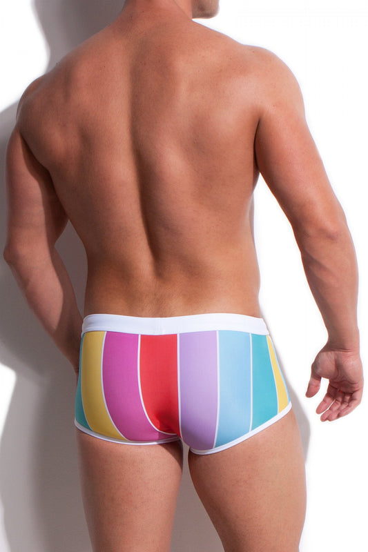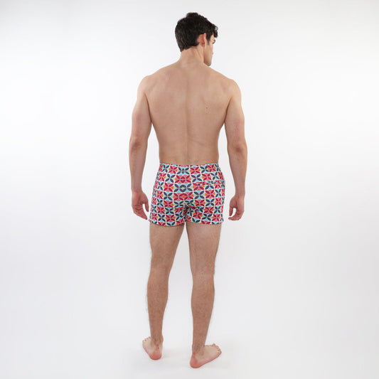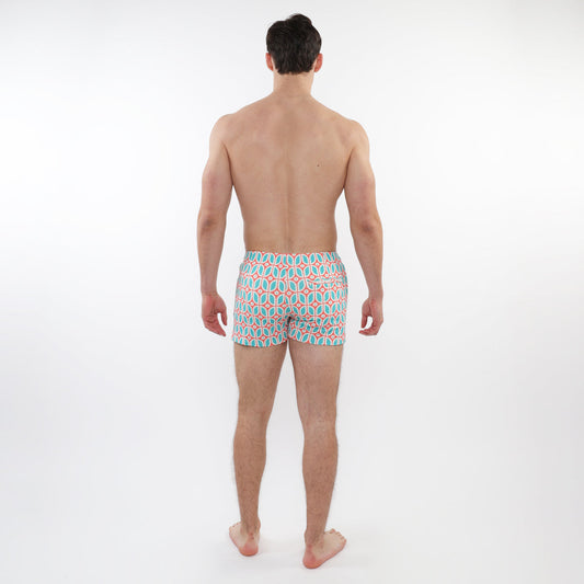 Postmarc Teal/Coral Printed Seersucker Swim Short