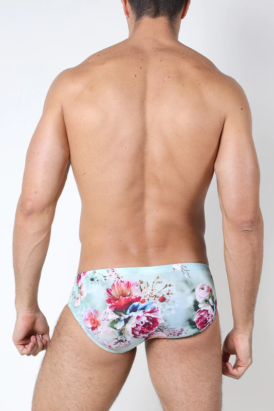 Postmarc Mint/Floral 2.5" Printed Border Swim Shorts
