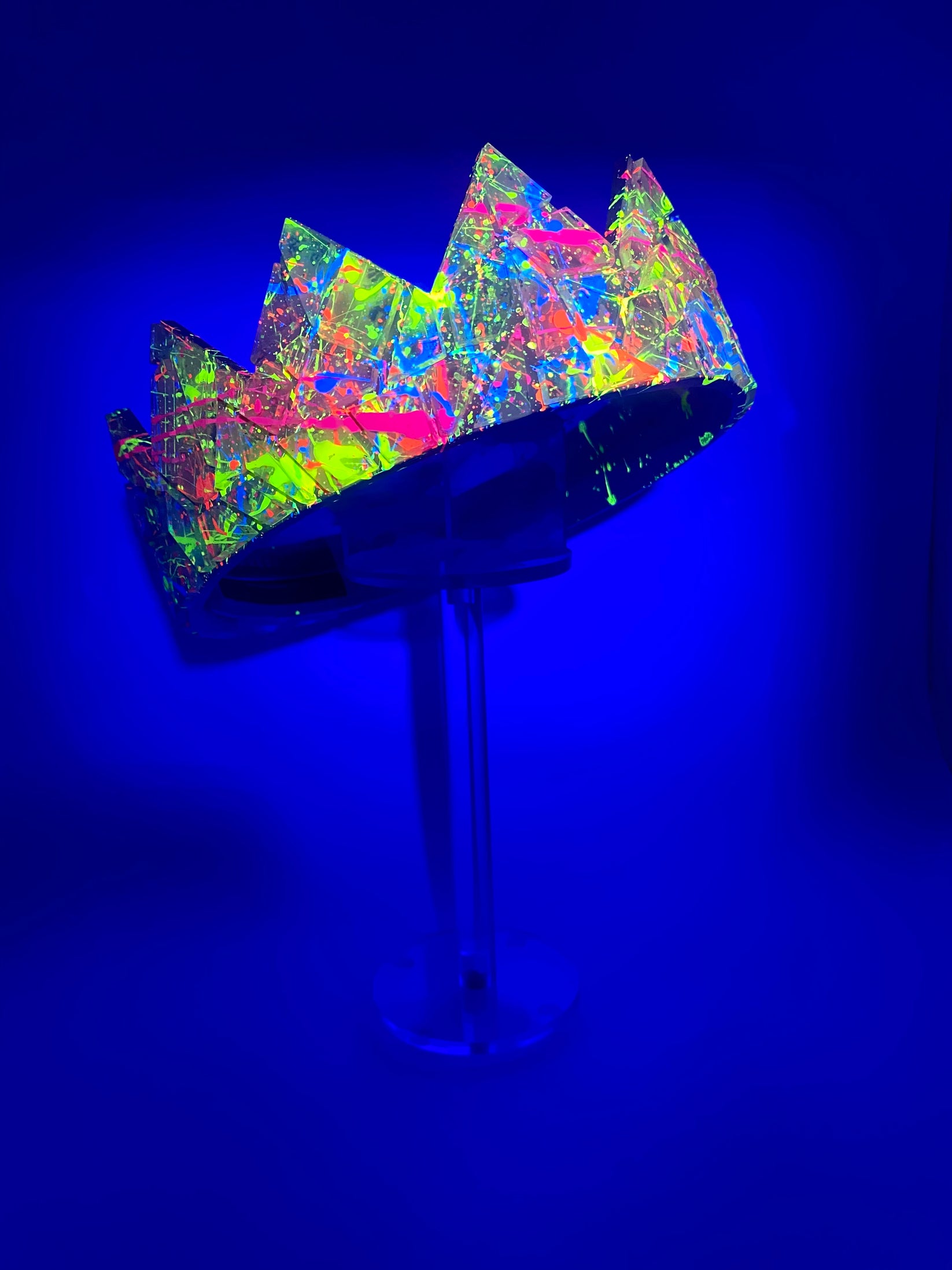 Take your rightful place at the throne everywhere you go in these ornate crown. Sure to be a conversation piece, you’ll ignite a room when the light hits all 120 laser-cut, acrylic mirror pieces set on leather. This crown is perfect for entertaining your delusions of grandeur every single day.