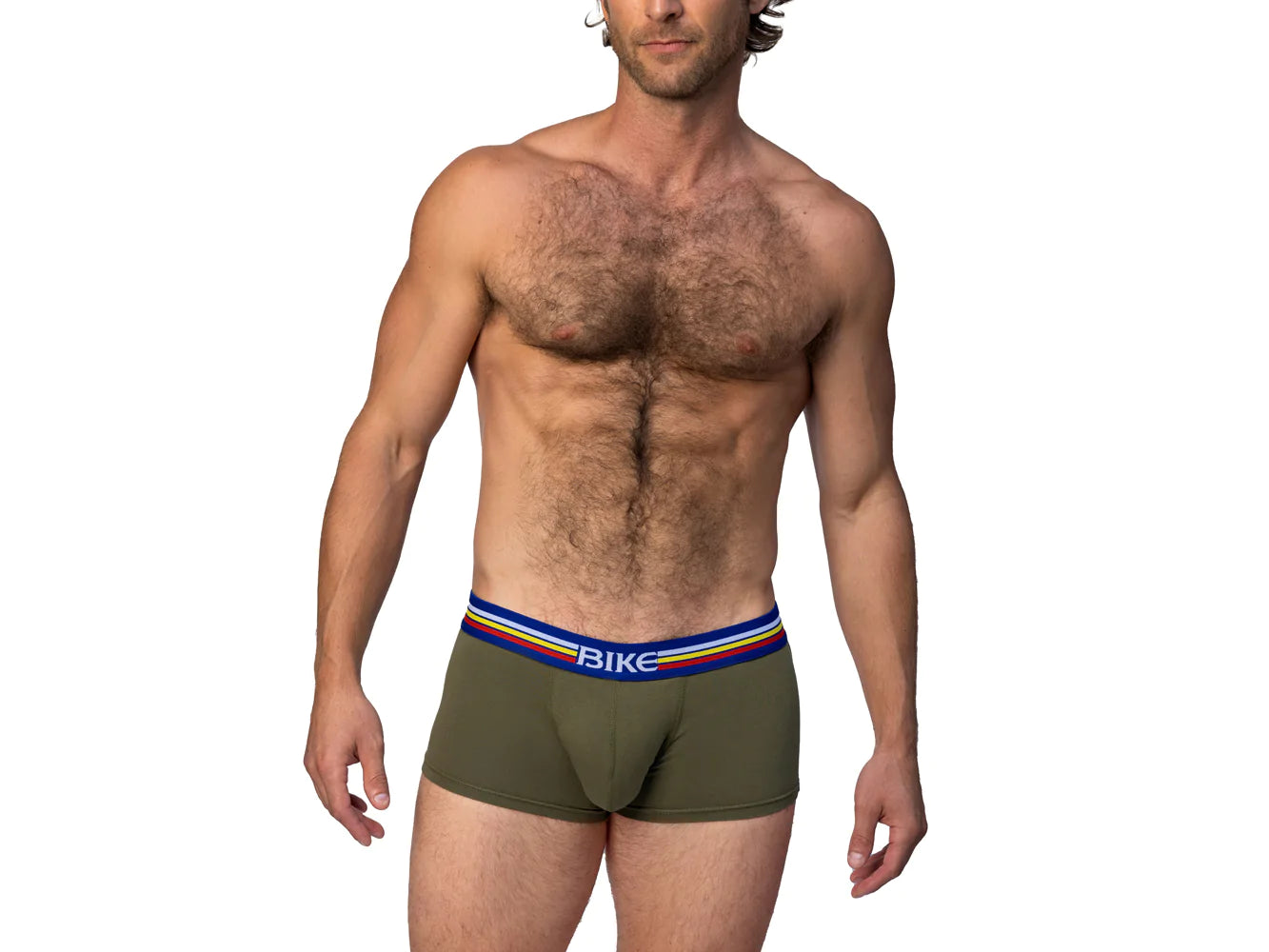 The support and freedom you’re looking for. The BIKE® men’s Trunk Underwear is constructed with a super soft, combed cotton with spandex blend for all-day comfort. Our contoured pouch provides you with enhancing support, and the 3” inseam is the perfect length to wear under your shorter shorts.