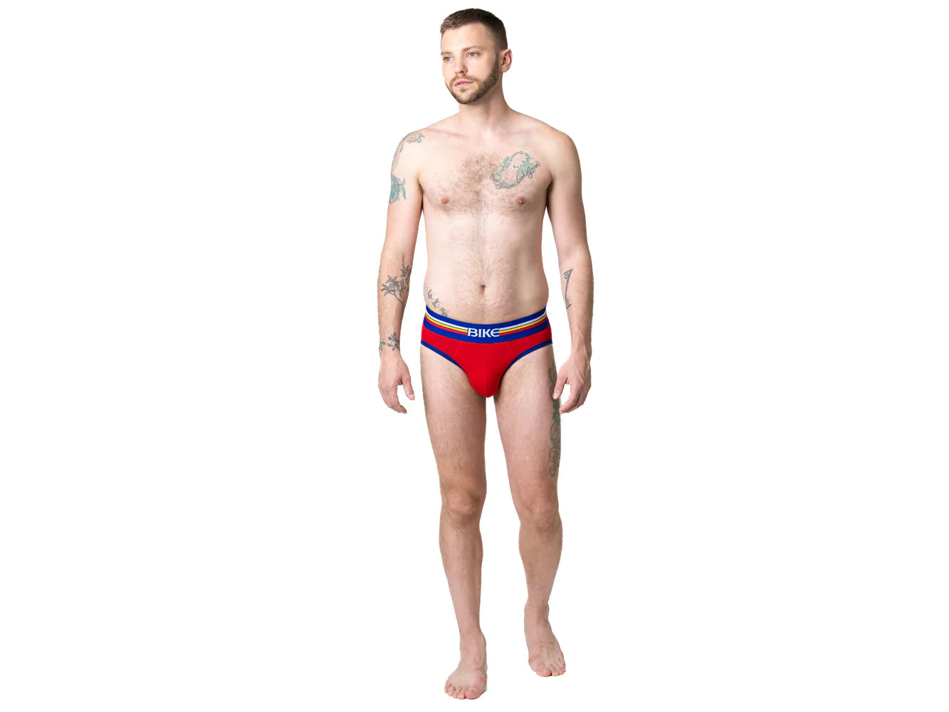 Our popular men’s cotton brief underwear now available in black and red. These briefs are constructed with minimum fabric and maximum style. The contrasting ribbed leg and BIKE® logo waistband give this brief a vintage look. Take the guessing out of comfort and style with these classic briefs.