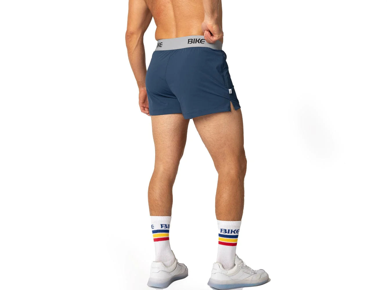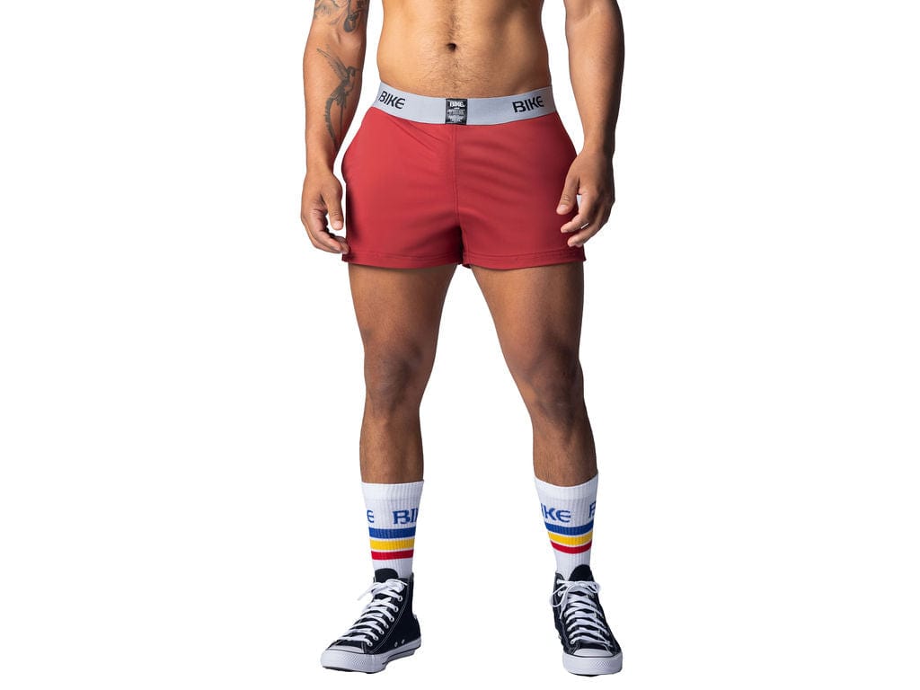 We took a pair of gym shorts, sewed in a Classic BIKE Jock, and added our well-known branded and expandable waistband to create the BIKE Jock Short.