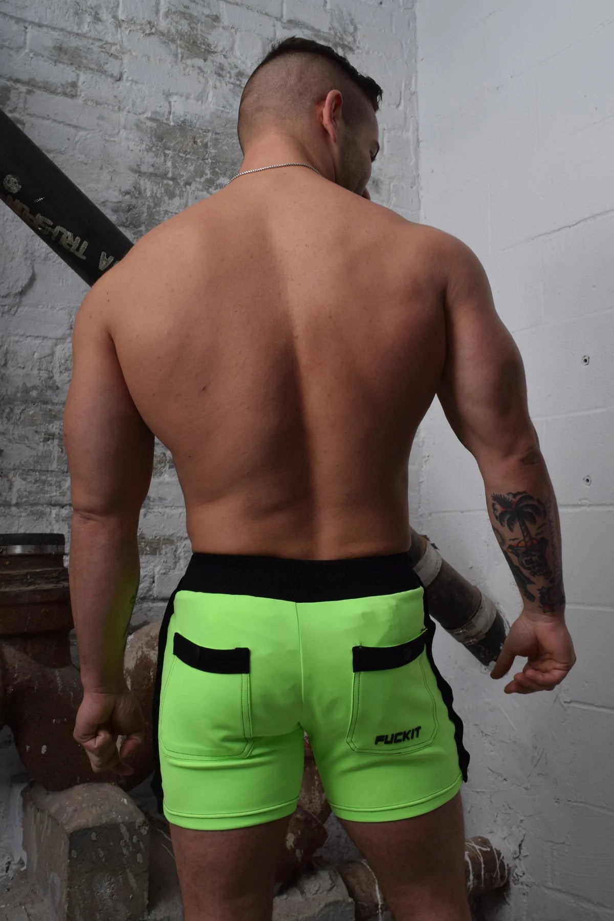 When you combine innovation and sexy fashion, you get BREEDWELL. Introducing the new BACKPACK SHORT, sure to be the must-have item this season. Made of a buttery heavyweight nylon knit that’s soft to the touch and revealing (when they’re on AND off), these shorts have snaps on the side so you can pull them completely off in one sexy reveal. But that’s not all, they also feature a built-in backpack that you can fold the shorts into and secure around your back when you’re trying to skip the clothes-check at the underwear party. With zippered pockets to secure your stash, a premium PVC patch on the front, and the message “fuck it” on the back, everyone will know exactly what your backpackin’. Get yours in neon green, black, and red.