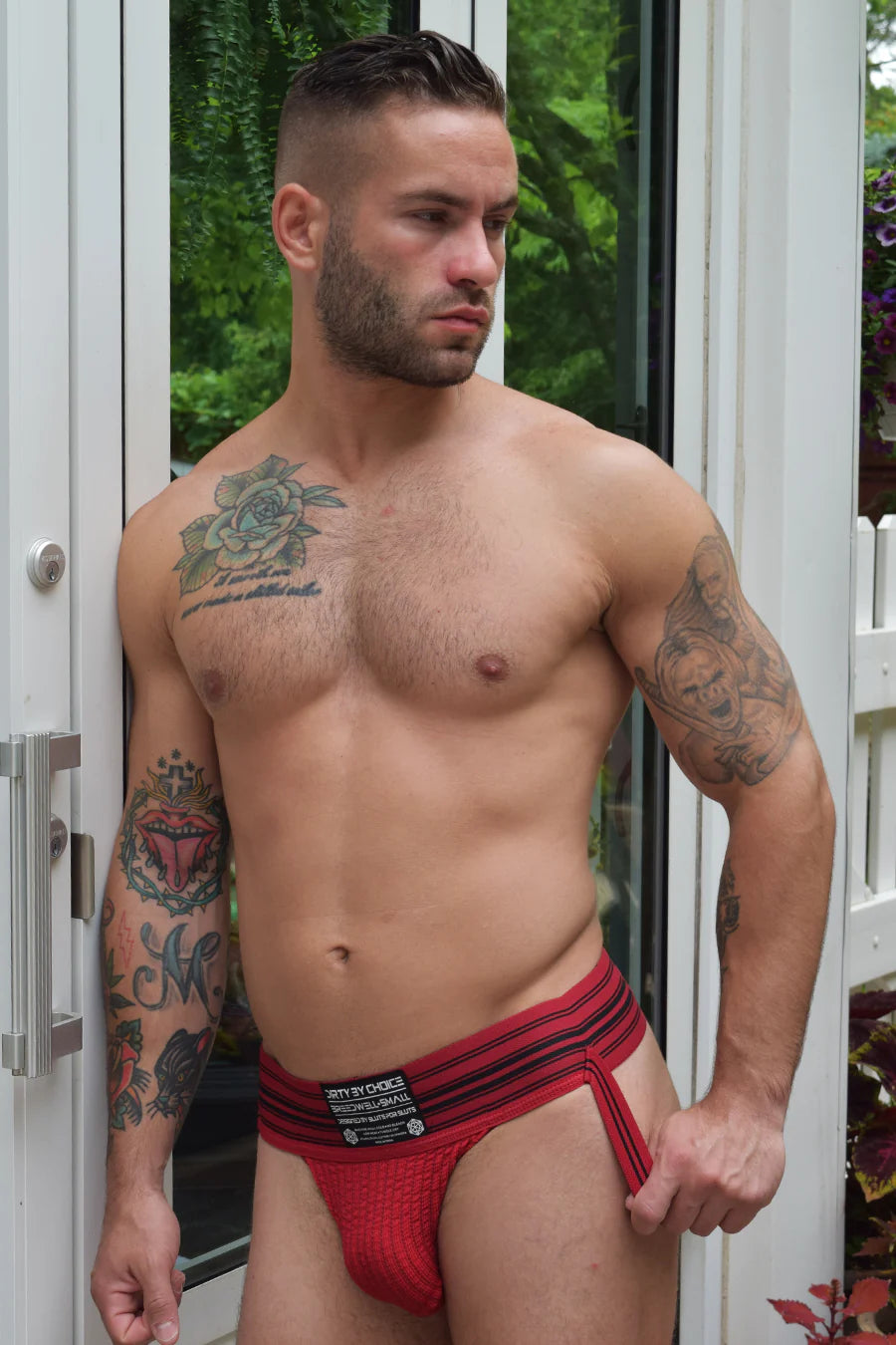 With a stretchy, woven cock pouch that accentuates every bulge, it holds sweat and scent. It looks undeniably hot and features a traditionally wide waistband just like your old school favorites. This is the jock you can get gross in, take loads in, and keep as a cum-soaked souvenir.