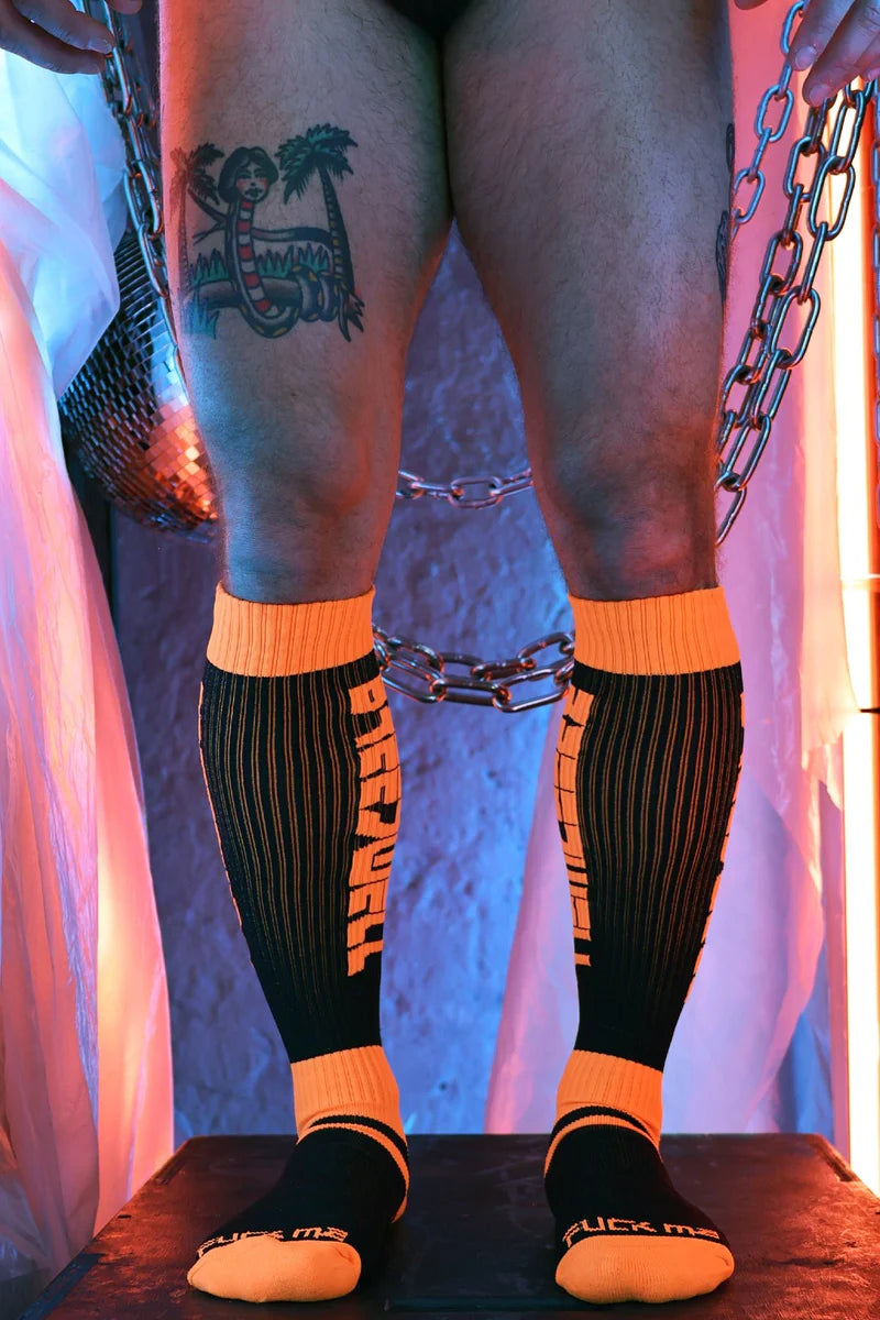 Socks. Not just the thing you use to cover your bottle of poppers and lube when the parents are in town. But also, one important pieces of gear in any man’s drawer. And the new ETERNITY SOCK is a must-have. ETERNITY is a game-changer. Designed to be worn with both FUTURA and REVOLUTION gear (or any gear really), the socks feature the BREEDWELL logo along the side and the sole and, of course, proudly centers our signature request on the toe pad: FUCK ME.