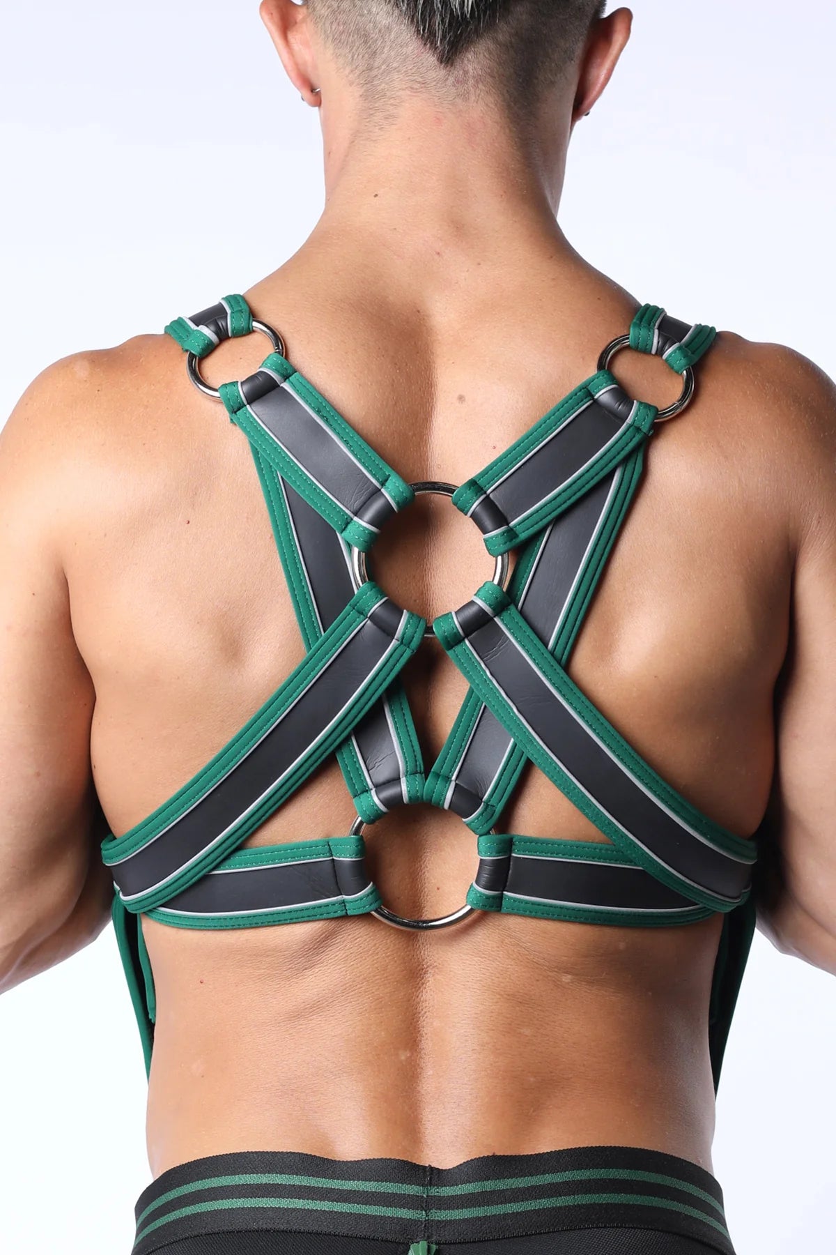 MADE OF HIGH-QUALITY SMOOTH AND STRETCHY NEOPRENE, THE MERCURY NEOPRENE COLLECTION FROM CELLBLOCK13 SETS THE STANDARD FOR FETISH WEAR. STRAP ON THIS HOT HARNESS FEATURING DOUBLE STRAPS ACROSS THE CHEST, A DOUBLE X-SHAPED BACK AND BLACK METAL HARDWARE. TORSO STRAPS ENDING IN LOBSTER CLAW CLASPS ATTACH TO THE BELT LOOPS OF YOUR JEANS OR TO THE NEOPRENE JOCKSTRAP OR TRUNK (EACH SOLD SEPARATELY) FROM THE CB13 MERCURY COLLECTION.