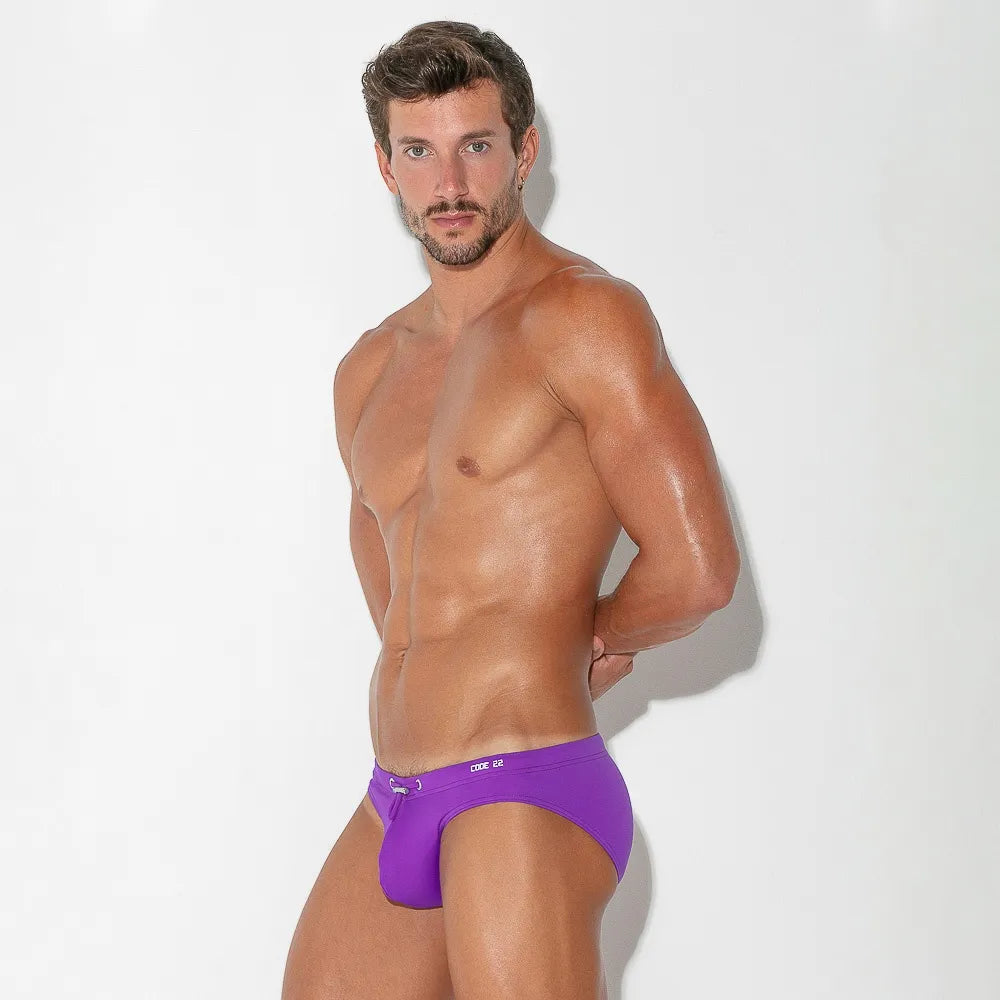 Low cut swim bikini brief made of the finest fabric. Full front pouch with lining, a back seam to accentuate the rear shape and an adjustable cord on the waist and high frequency logo on waist.
