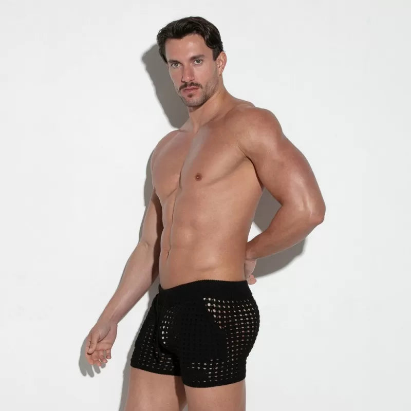 Knitted crochet short made of finest viscose/cotton. Ribbed finishing on waist and thigh for a better fit with a 2” inch / 5.5cm inseam. Our iconic logo embroidered on thigh.