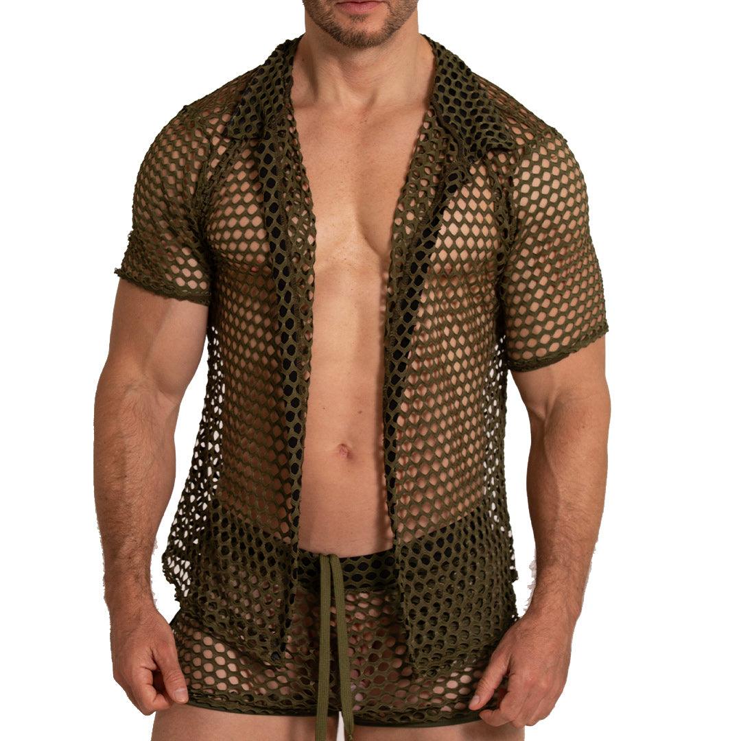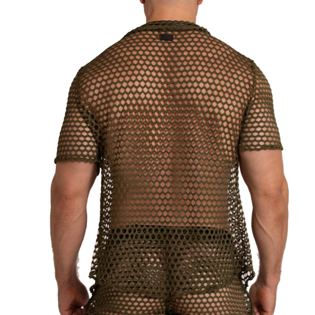 Gigo Fishnet Button Up Polo