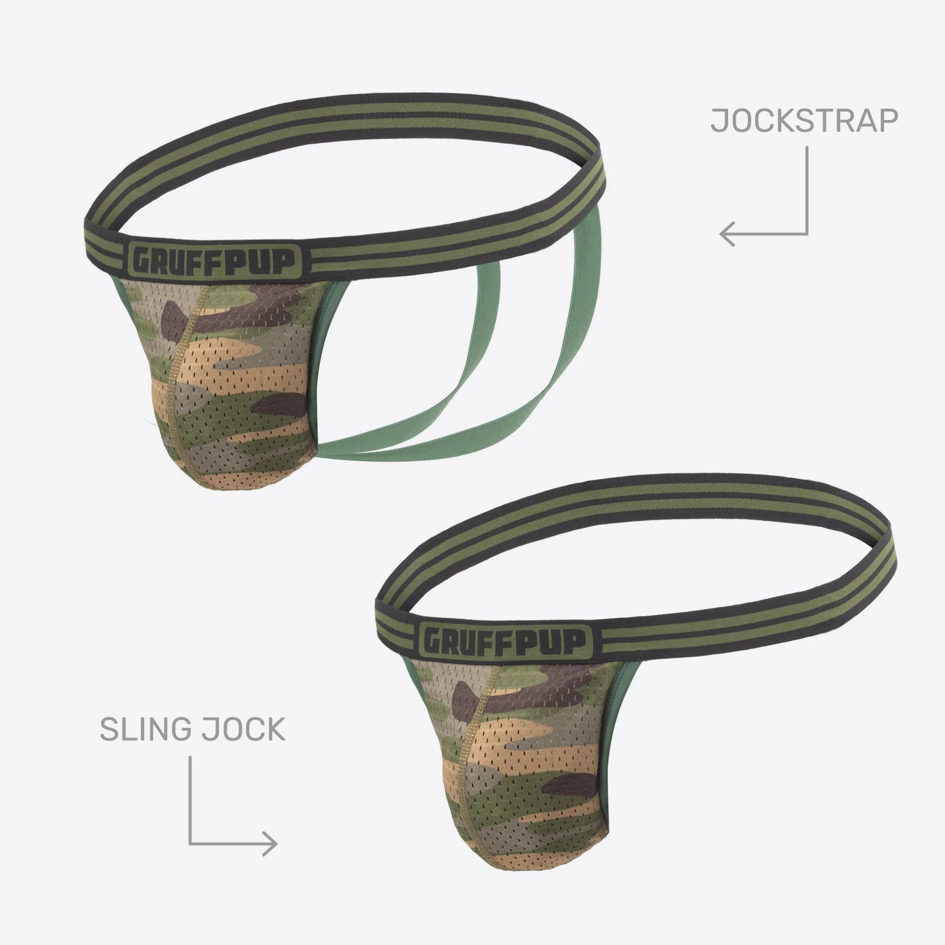 This jock combines Gruff Pup’s premium Pro Mesh fabric with a rugged camo design, making it ideal mesh underwear for men. The single-layer mesh pouch is stretchy and durable, showing just enough skin to turn heads. With our ultra-comfortable Pro Mesh material, you’ll feel covered but still have that tease of transparency that’s irresistible. It’s the kind of mesh jockstrap that combines function and style, ensuring a fit that stays in place while letting you flaunt what you’ve got.