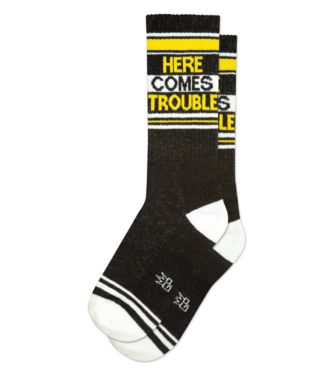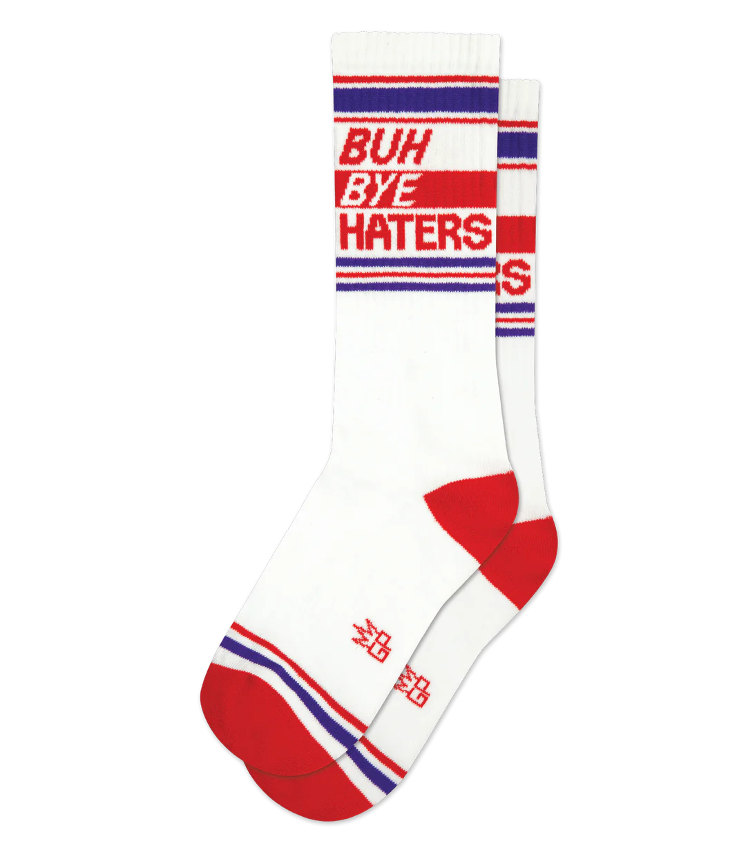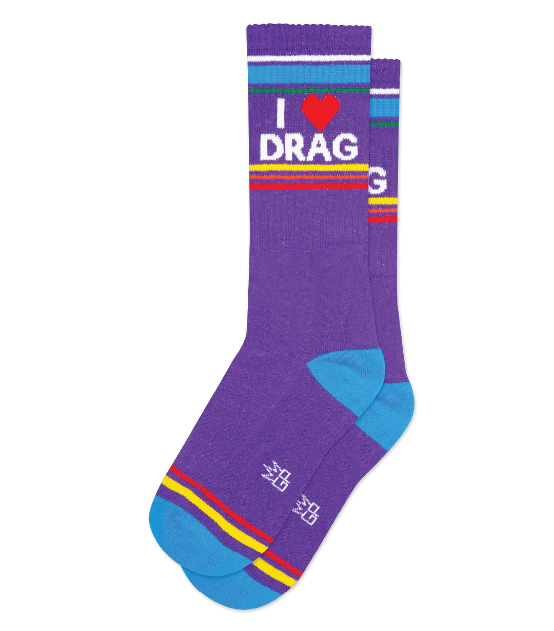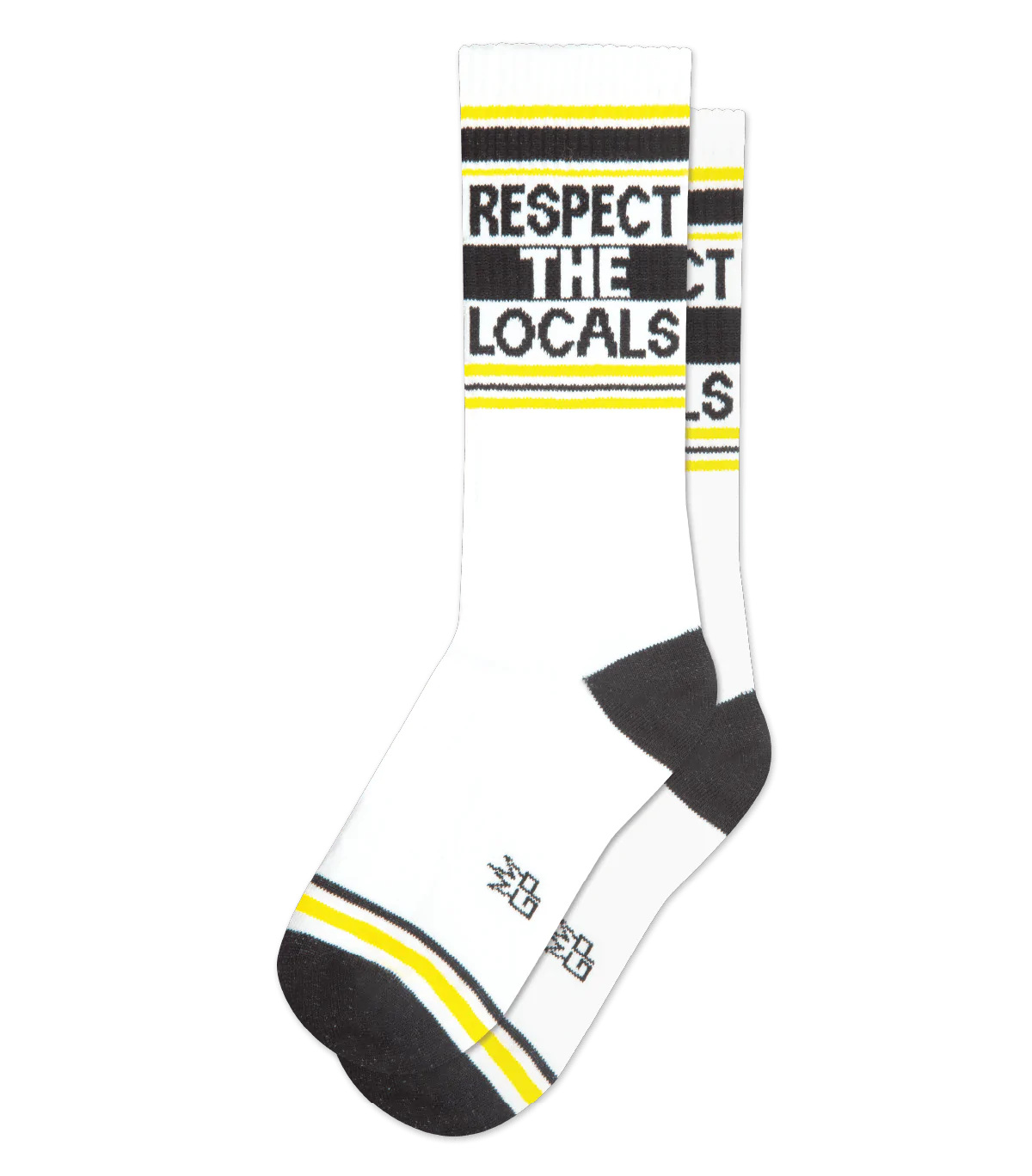These wide ribbed socks reach to mid-calf on most folks and fit a women’s size 6 US to men’s size 15. As a thicker weave, these socks are optimally worn with sneakers and other roomy shoe styles. Machine wash cold, line dry.