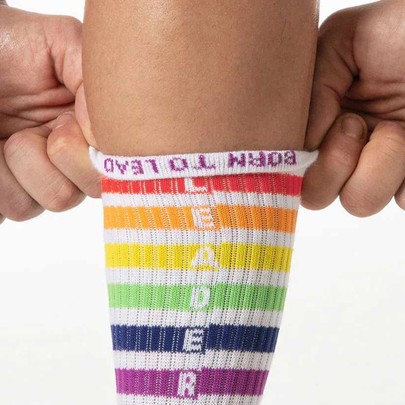Step up your sock game with our new collection of fun colours and playful pride themes. Socks so comfy, they'll have you feeling confident enough to show some leg (and maybe a little more)!