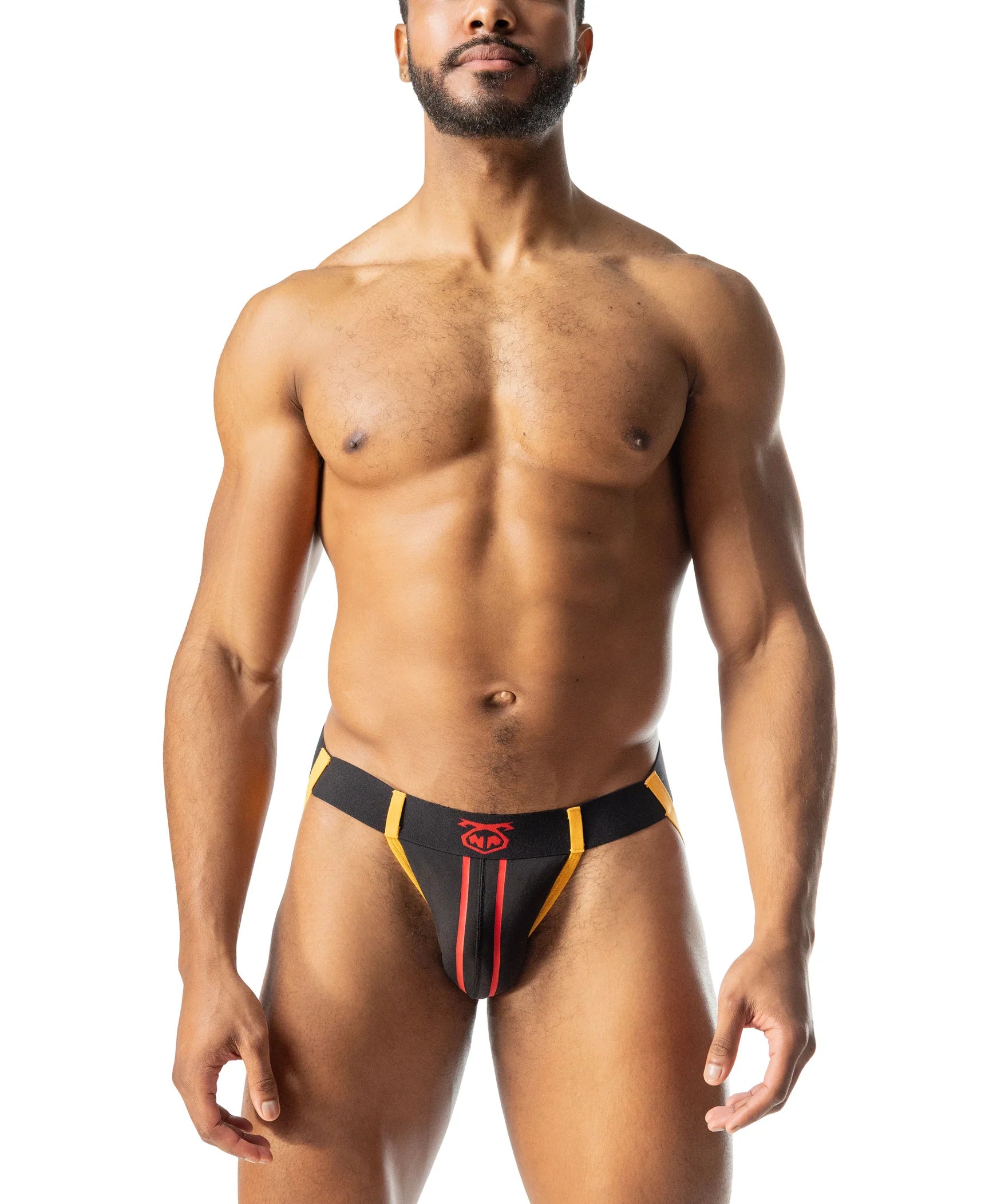 Step into the cage—or the club—in the Contender Jock Strap. This MMA-inspired essential brings knockout sex appeal with its bold red and gold detailing that frames your best junk. Built with a supportive pouch and wide straps for max comfort and movement, it’s cool, breathable, and made to turn heads. Whether you're throwing punches or just flexing for the crowd, this jock hits hard and leaves a mark.