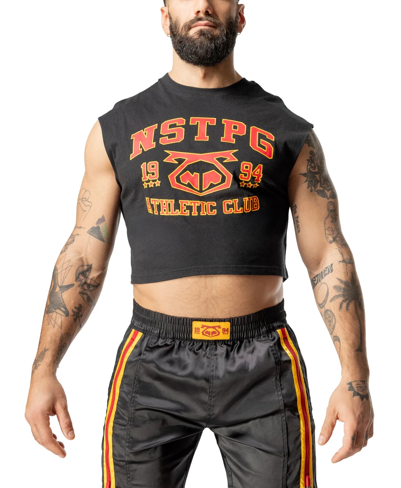 Bring that gym-class-hero energy with the Contender Sleeveless Crop Top. Cut high at the torso and tight at the shoulders, this top throws down serious athletic club vibes with our bold NSTPG 1994 graphic. Made of 100% pre-shrunk cotton for a perfect fit every round, it’s built to show off muscle, attitude, and heat. Pair it with trunks, jocks, or nothing at all—this crop’s ready for any match.