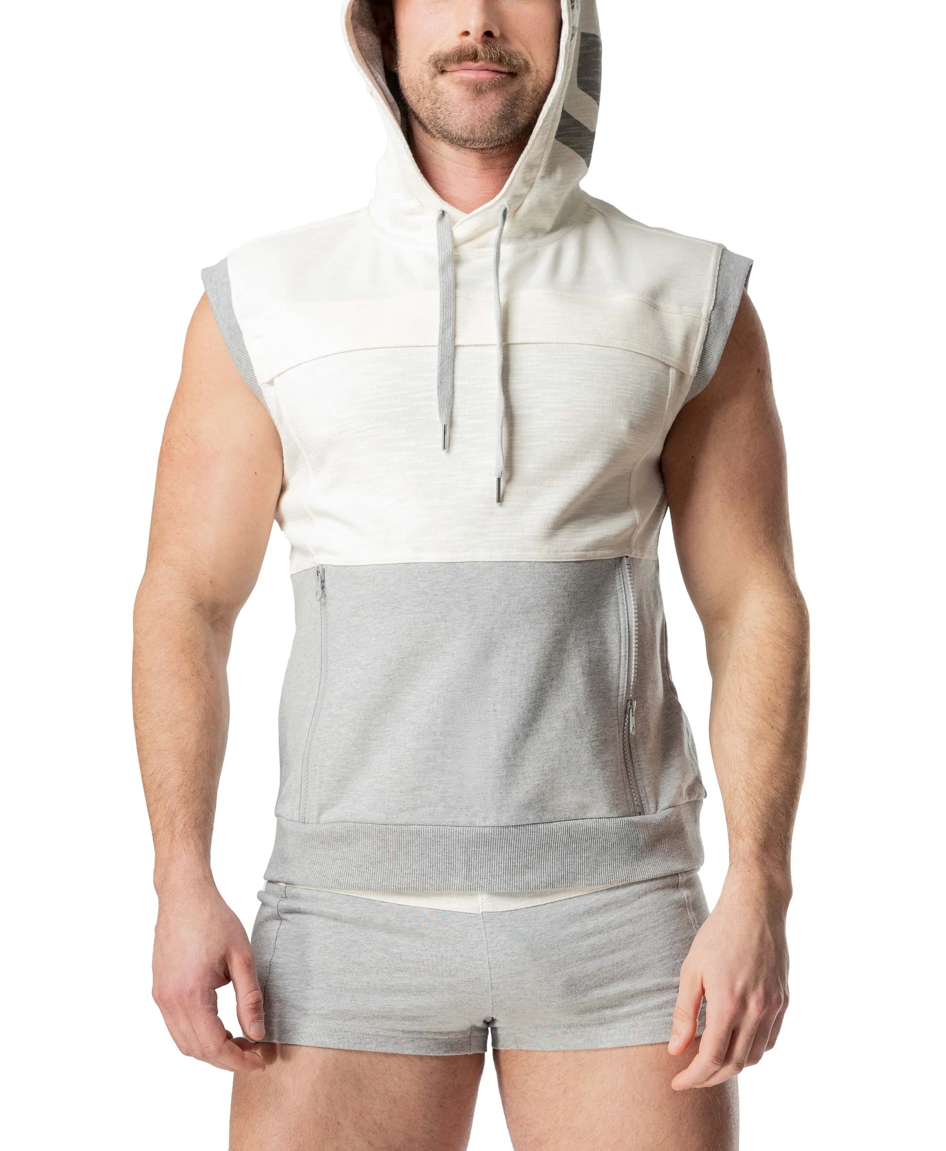 The Dual Sleeveless Hoodie blends sport and street style with a bold, modern edge. The color-blocked design gives it a sleek look, perfect for the gym or beyond.