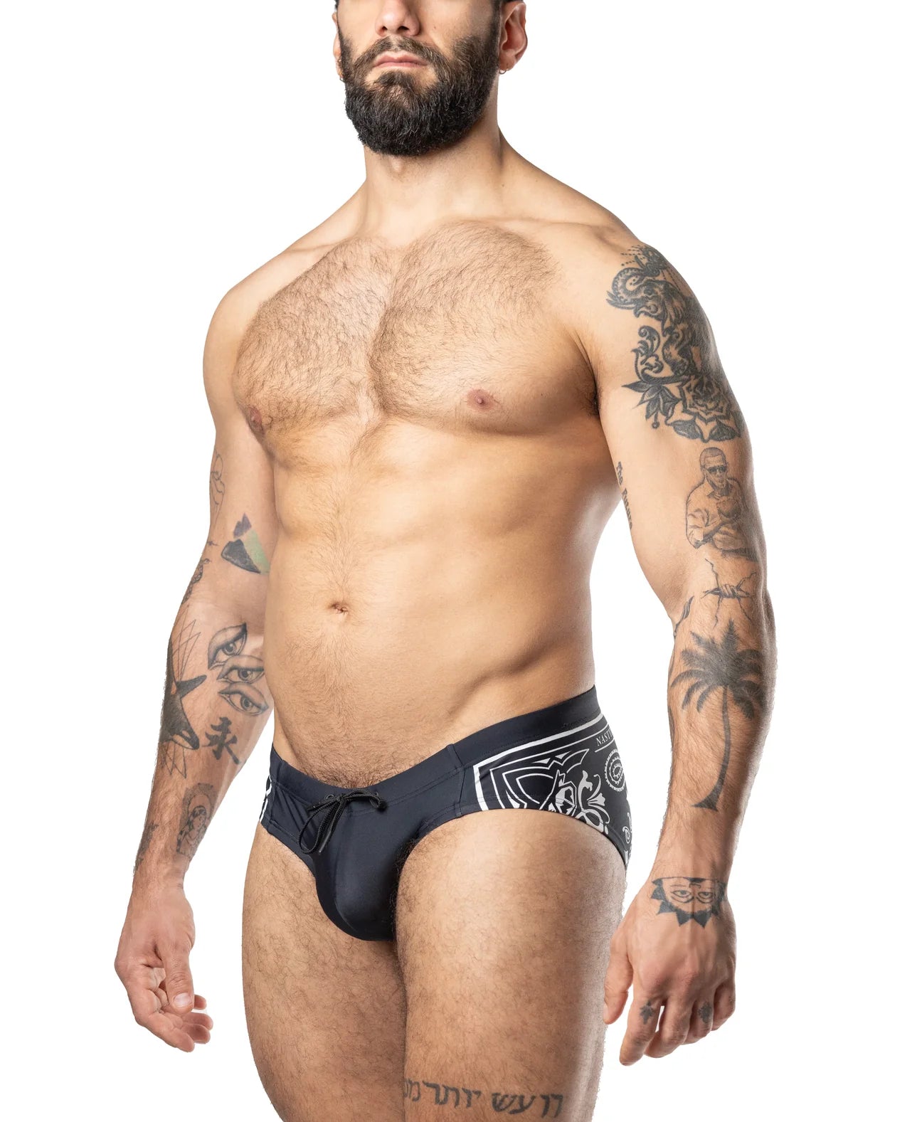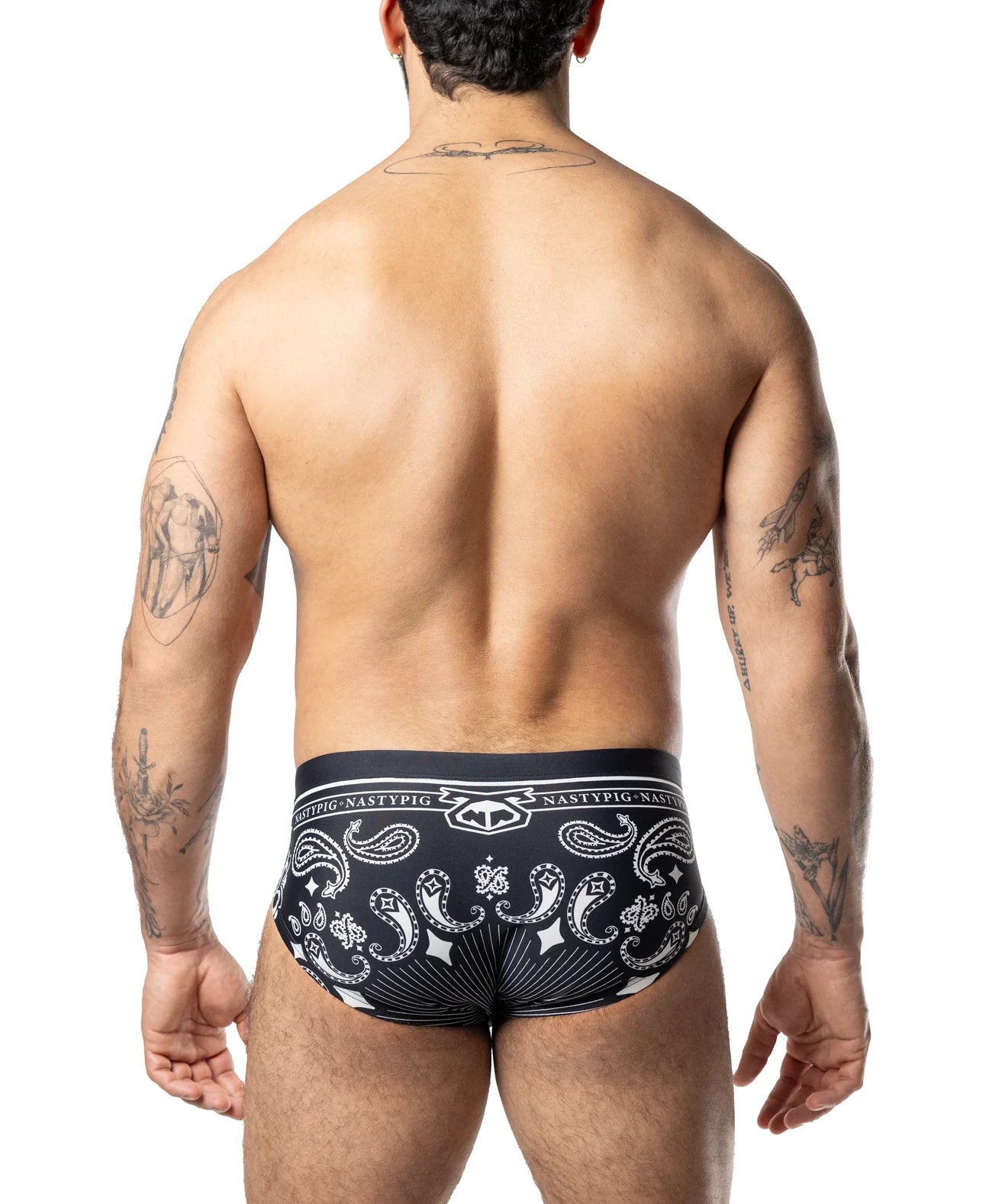The Hank Bikini blends sleek style with sexy attitude. Featuring a clean black front and Nasty Pig Bandana print on the back, it’s designed for a confident fit that stands out.