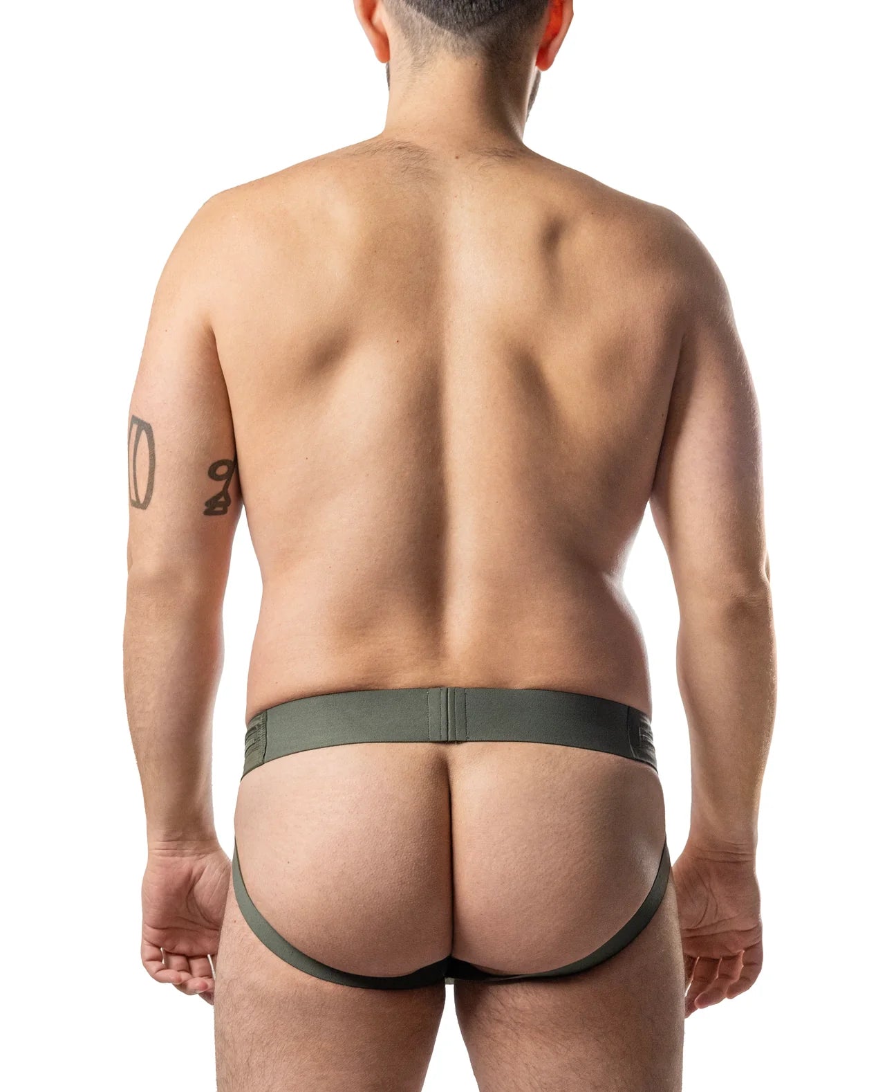 Inspired by workwear but made for play. Crafted from a specialized blend of poly and spandex, this jock is built to last with triple-stitched durability where the pouch meets the waistband.