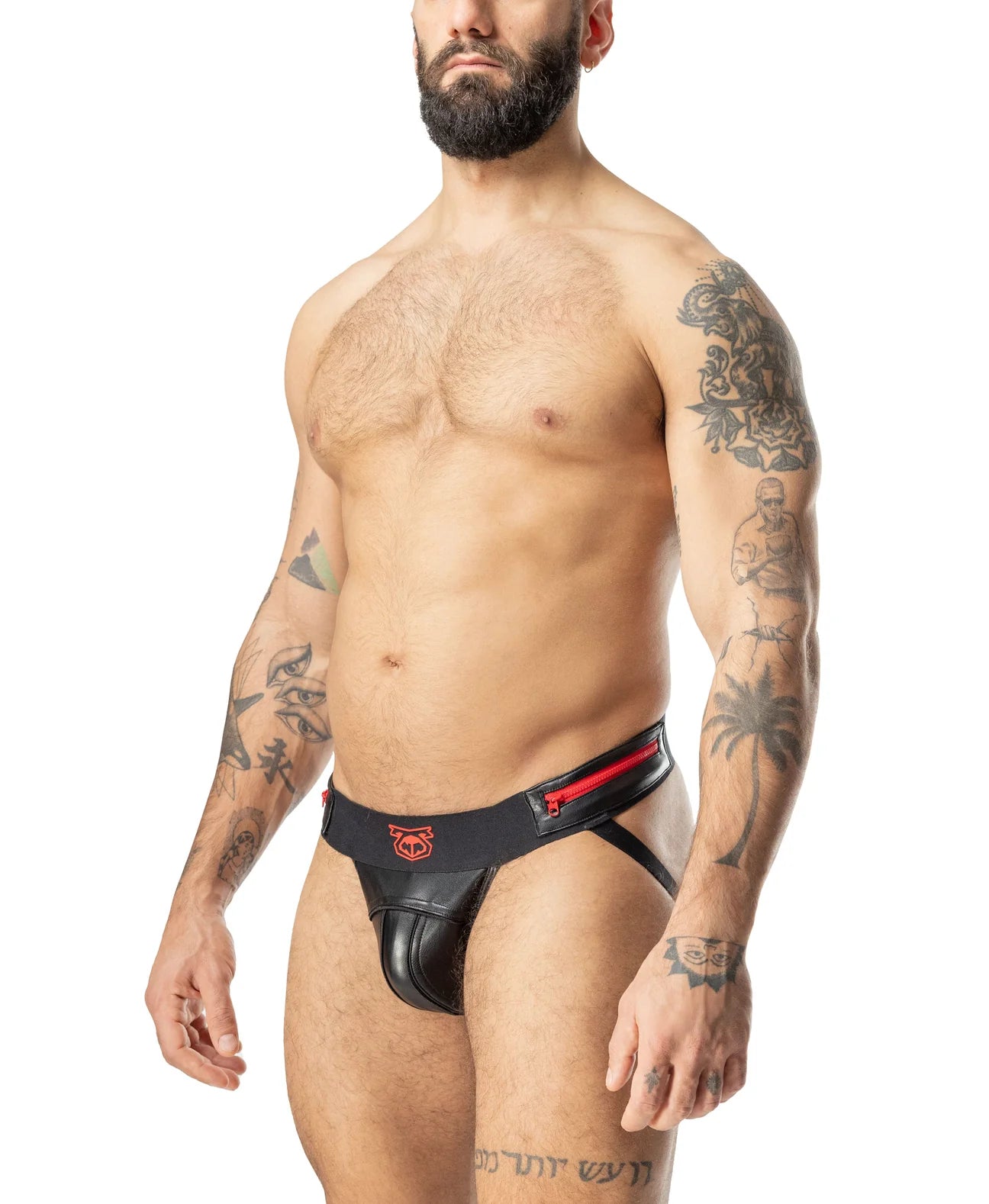 The Wrecked Jockstrap brings serious heat. Soft vegan leather hugs your crown jewels, while the structured pouch shows it off. The raised Snout logo on the waistband gives that unmistakable Nasty Pig vibe, and two discreet waistband pockets keep your essentials close. Unique construction and cool-to-the-touch comfort make this jock a must-have—whether it’s your dirty little secret or the star of the show.