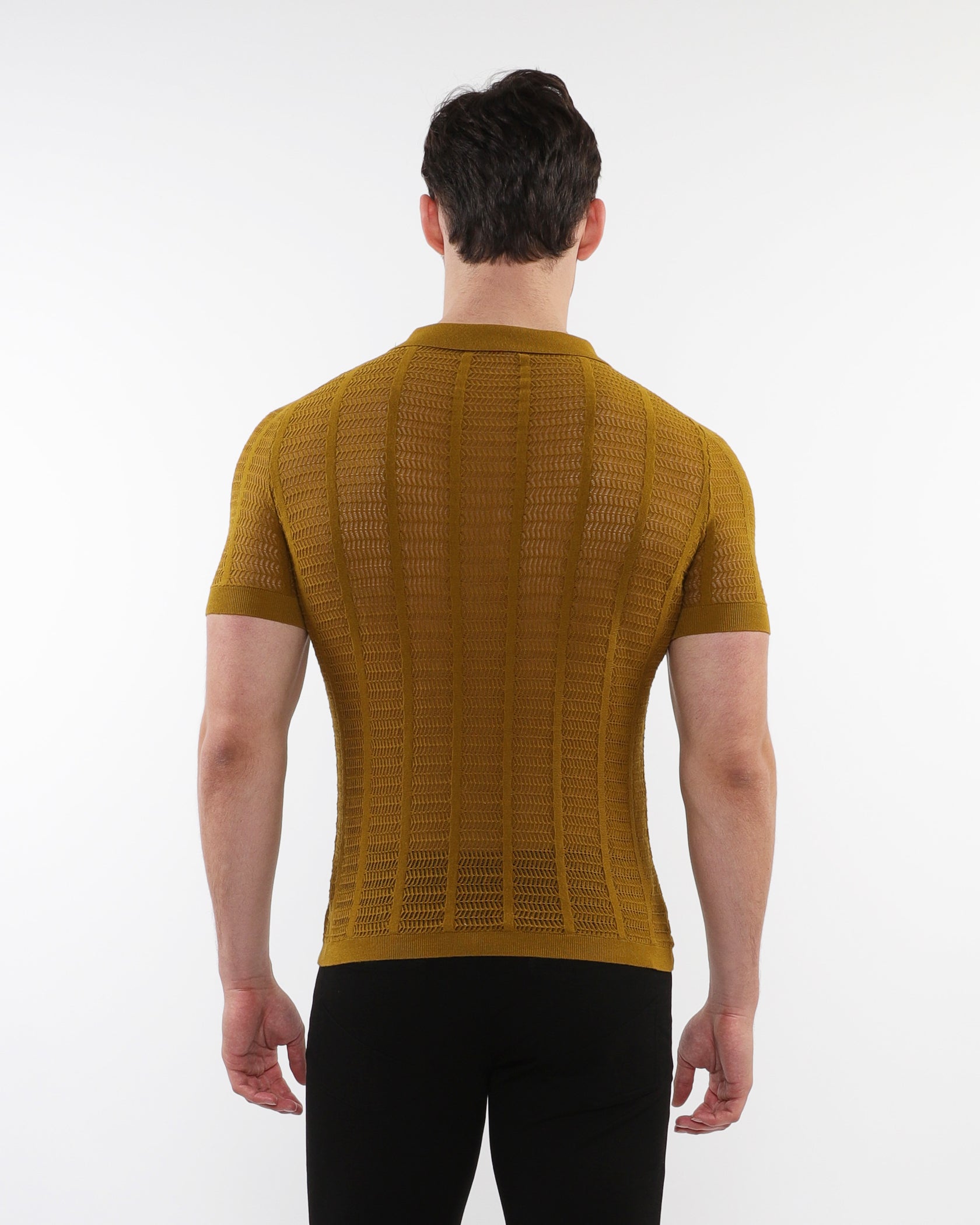 PostMarc Whiskey Open Collar Mesh Knit Shirt