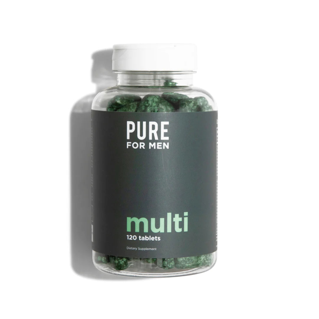 Our Pure for Men Multivitamin is a Vegan, Proprietary Blend of Vitamins and Minerals: Vitamin B, Vitamin C, Vitamin D, and Fruits and Vegetables.