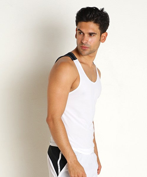 You bring the confidence, so why not flaunt it? For this sleek and sporty collection Rick Majors demanded a fabric with high-performance properties. It needed to release heat and sweat for superior breathability to keep you cool, dry and comfortable through any activity. This classic fit tank top is made of Sportek mesh, a super-light, finely perforated and semitransparent material with plenty of stretch. Pair it with the coordinating active shorts in the collection (pictured, sold separately) for a go-to set in your gym bag.