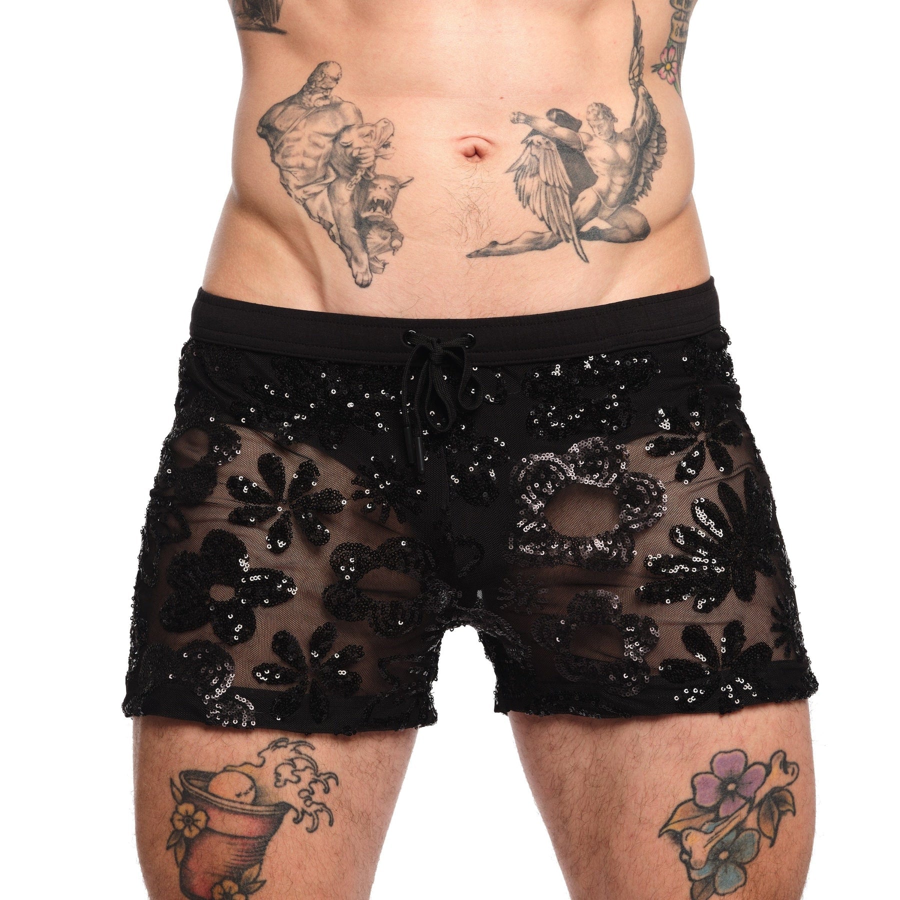 Fabric: Base: 100% Polyester Black Mesh / Black Sequins