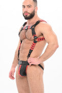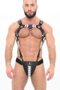 Our first Article in the history of Sparta's Harness Made in Italy is back in real leather and eco-leather. The Harness Katerpillar with its Masculine line with the intertwining of leather and leather forms a fantasy of arrows. The Harness is currently adjustable with snaps in the Back .The upper part has the four buckle closures on the chest while the adjustment of the sizes is done through snaps on the back of the Harness. Two strips of leather start from the rings under the armpits with the end in Elastic Band where two press studs are inserted to adjust the length.