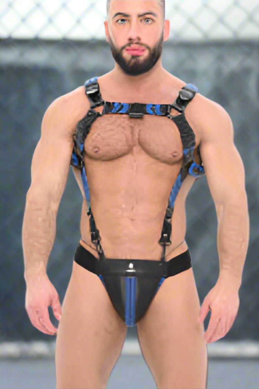 The Sparta Jock is composed of the leather pouch with the intertwining of leather and leather in the front strip. The back is in a Comfortable elastic Band.