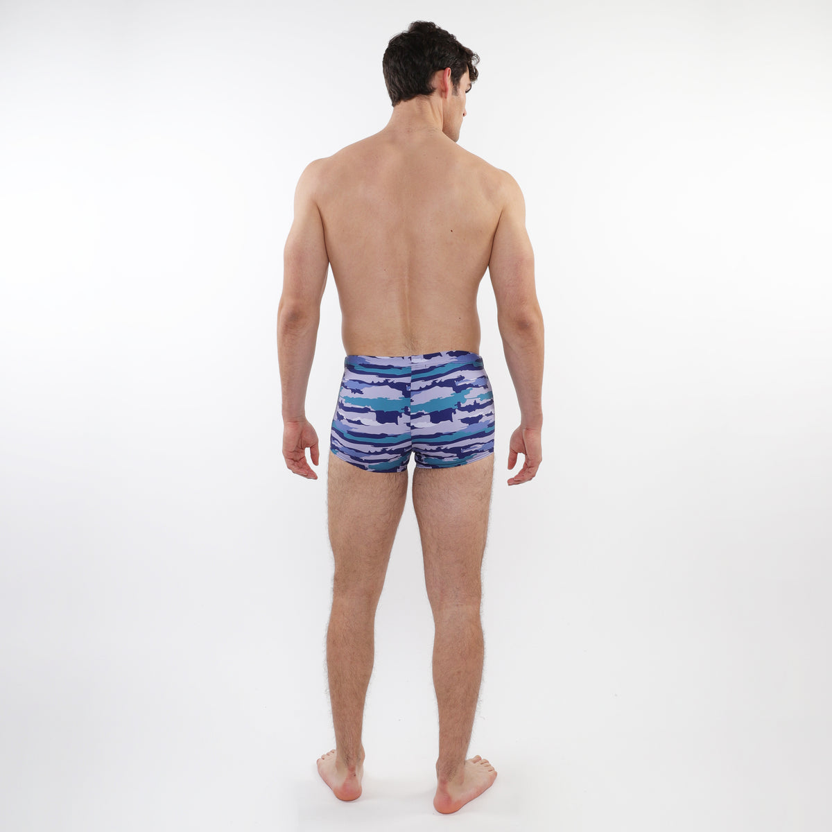 Fabricated from a quick-drying, ultra-soft 4-way stretch nylon-elastane fabric for superior comfort, shape retention, and ease of movement. The stylized scribbled camo print blends tones of purple, lavender, and periwinkle over a soft orchid background for a bold, modern look.