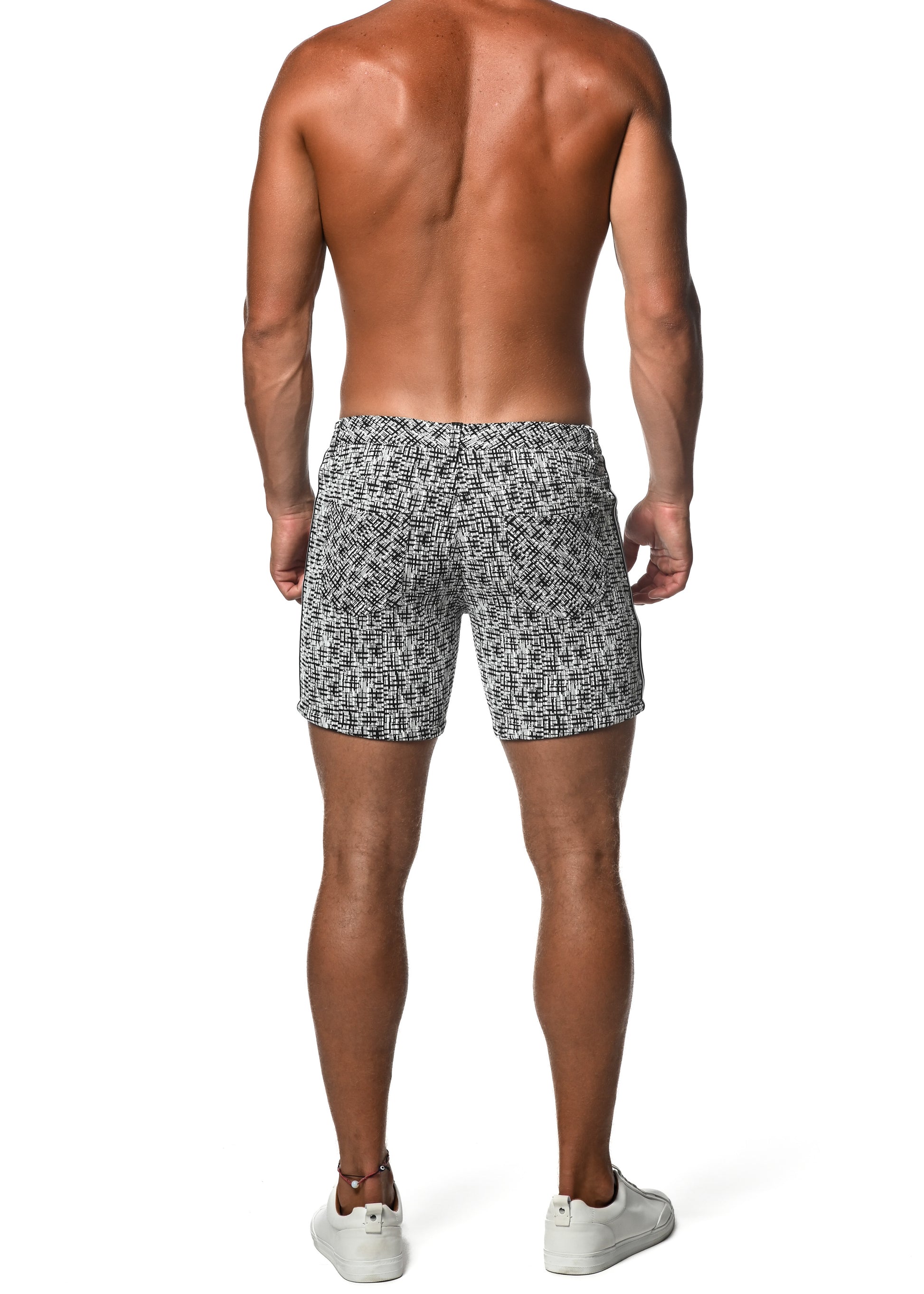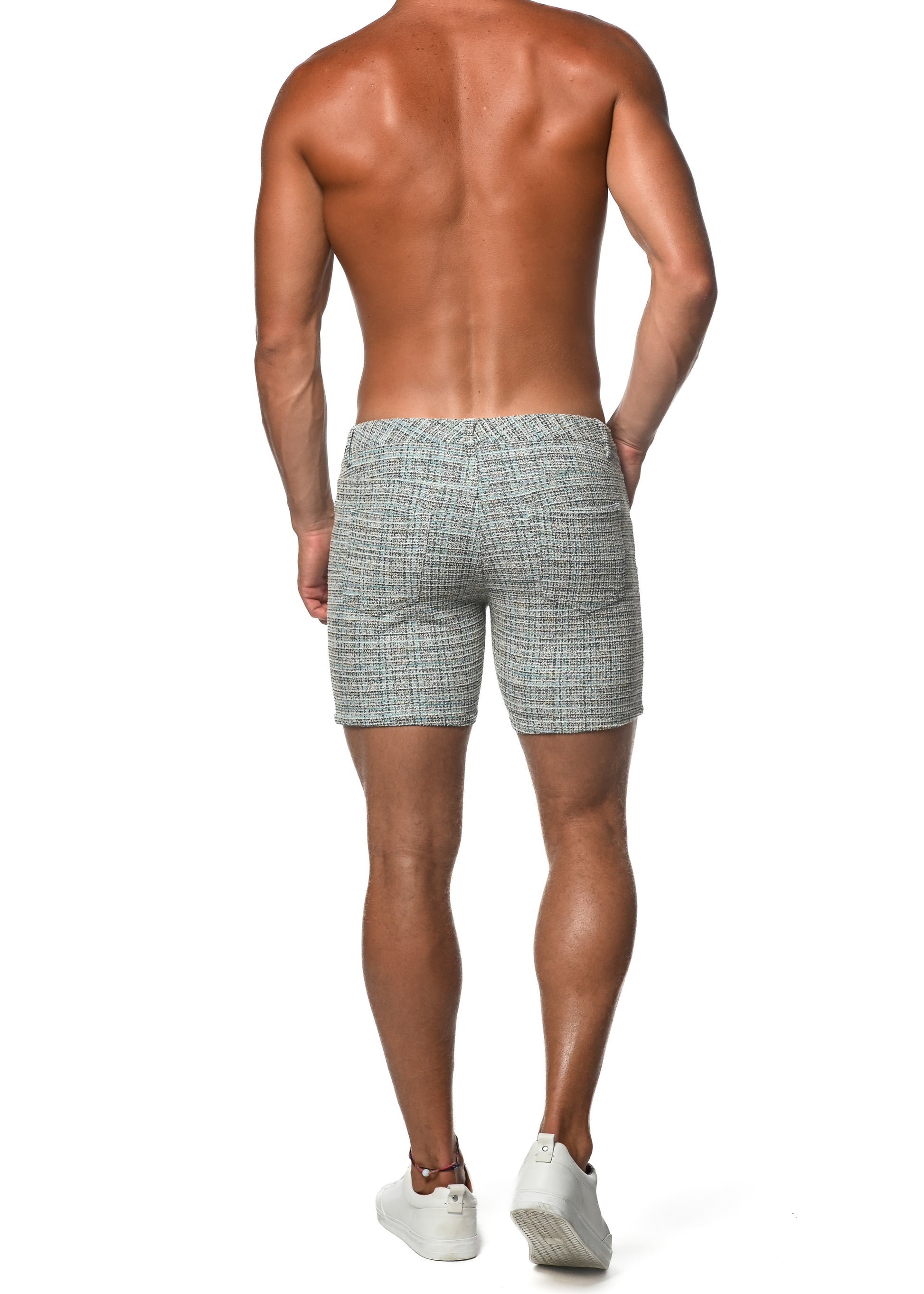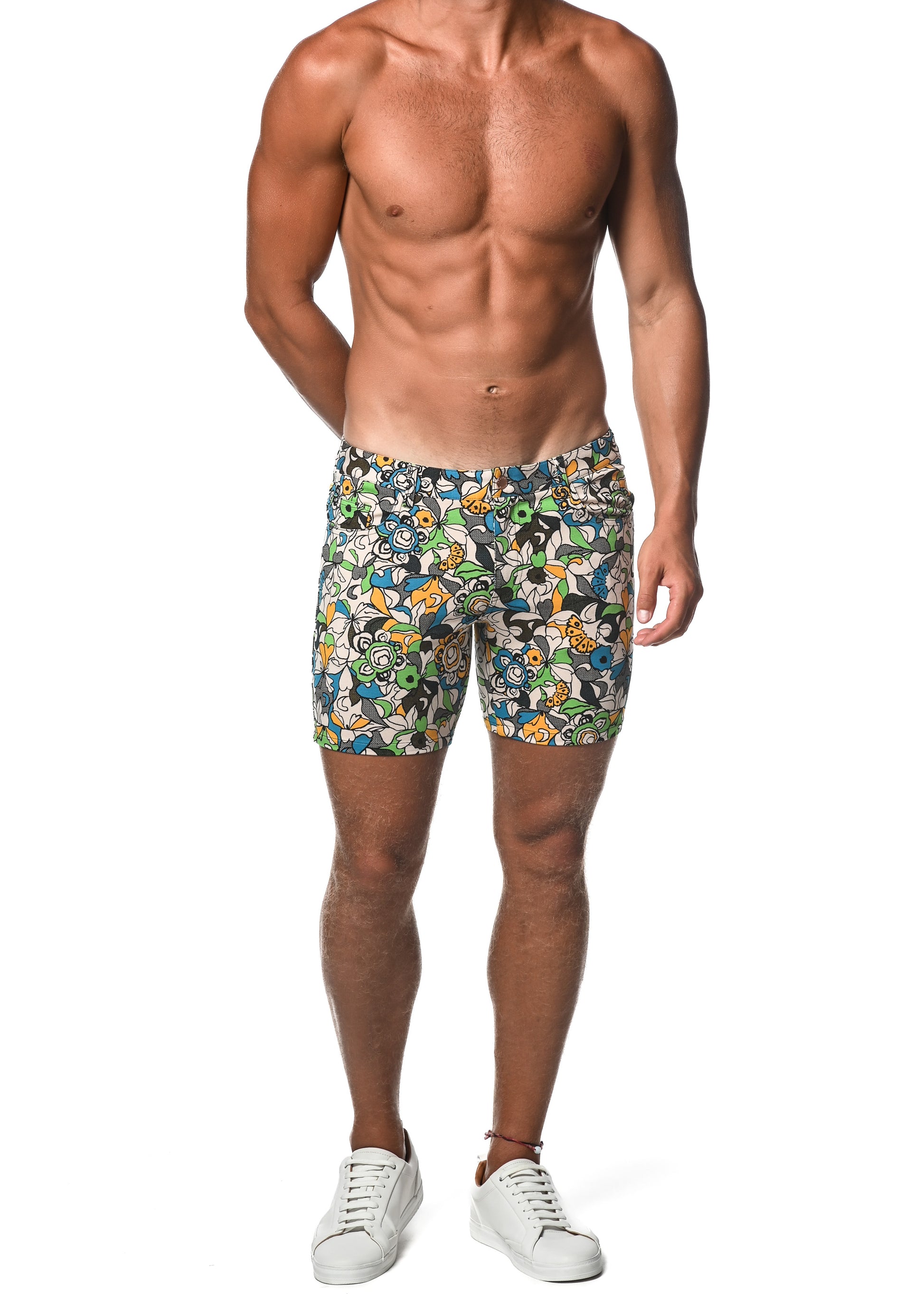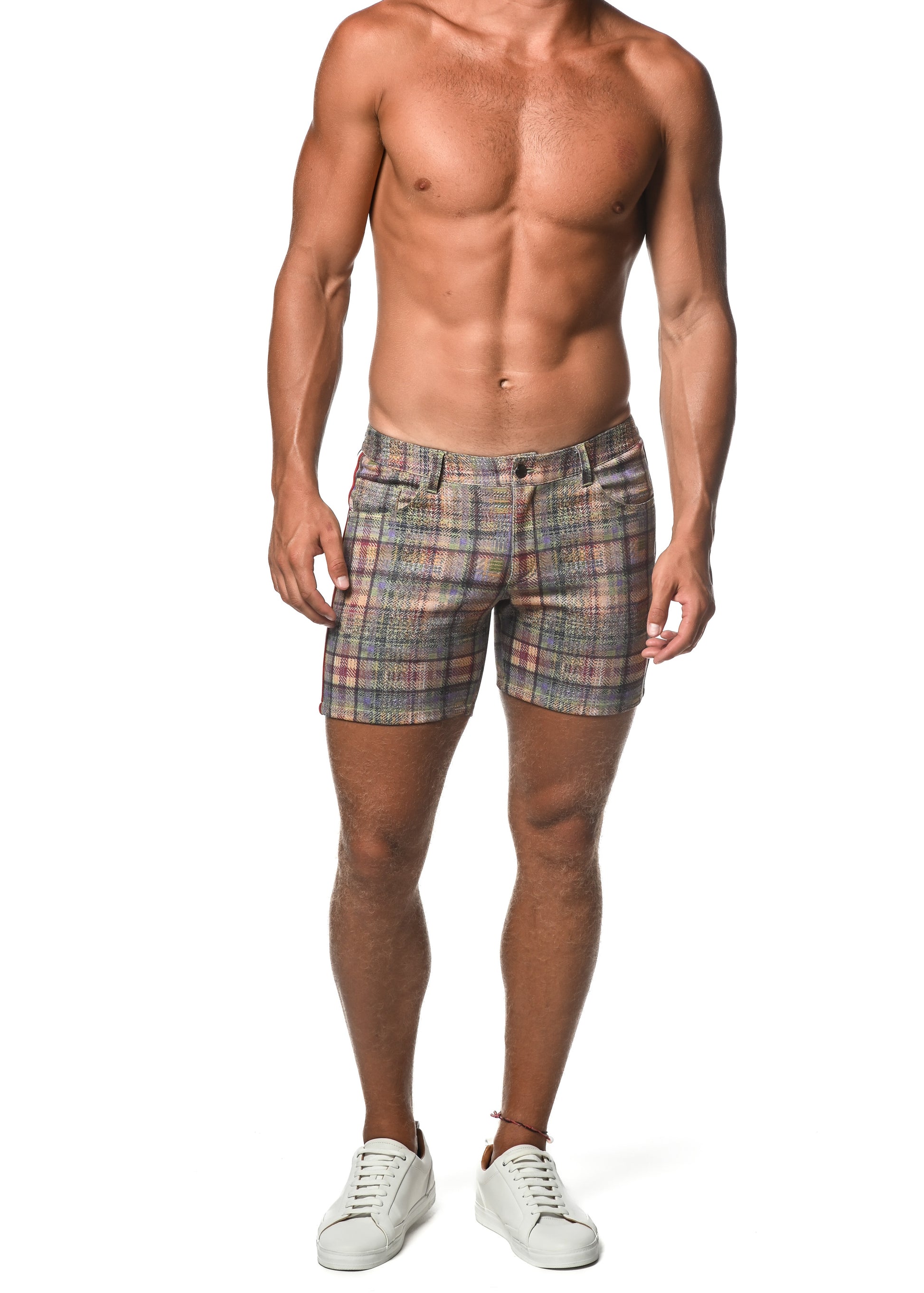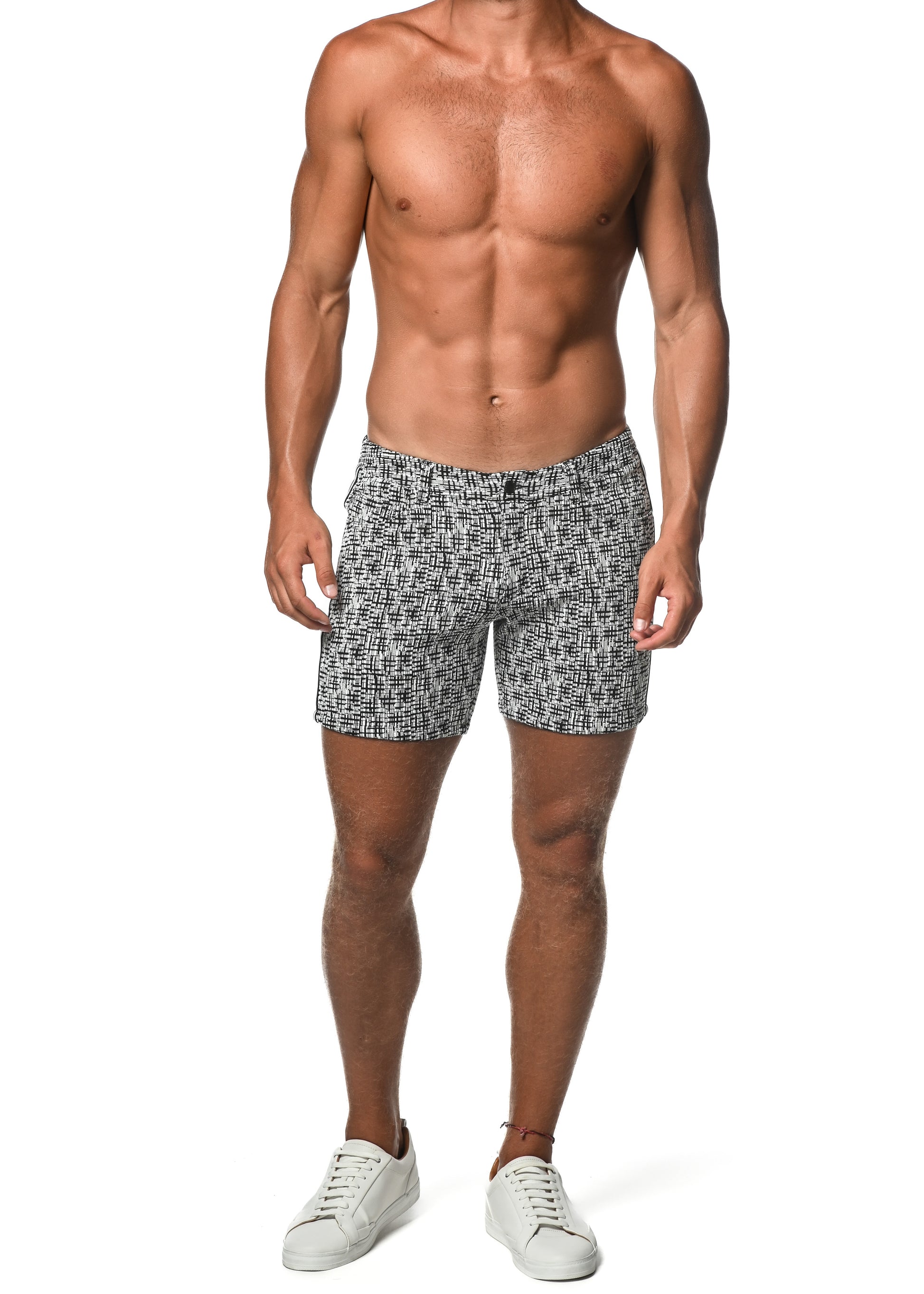 - The model measures 6'-1" and wears a size 31. Four way stretch fabric has a lot of give and the stretch waistband construction moves with the body for maximum comfort. Note that the sizing runs large for these shorts. For a slimmer fit, we recommend going down a size. For a snug, tight body fit, we suggest going two sizes down.