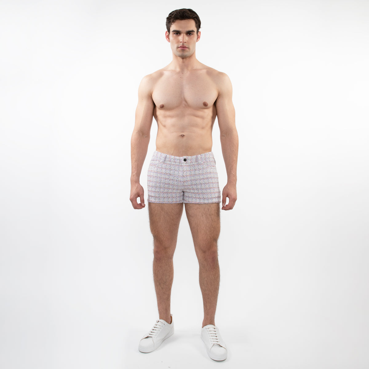 A limited-edition twist on our best-selling 5-pocket knit shorts, this style is reimagined in a soft lilac and pink tweed-look jacquard. With a shorter 3" inseam and a slim cut through the seat and thigh, this tailored silhouette flatters the body with a clean, modern edge.