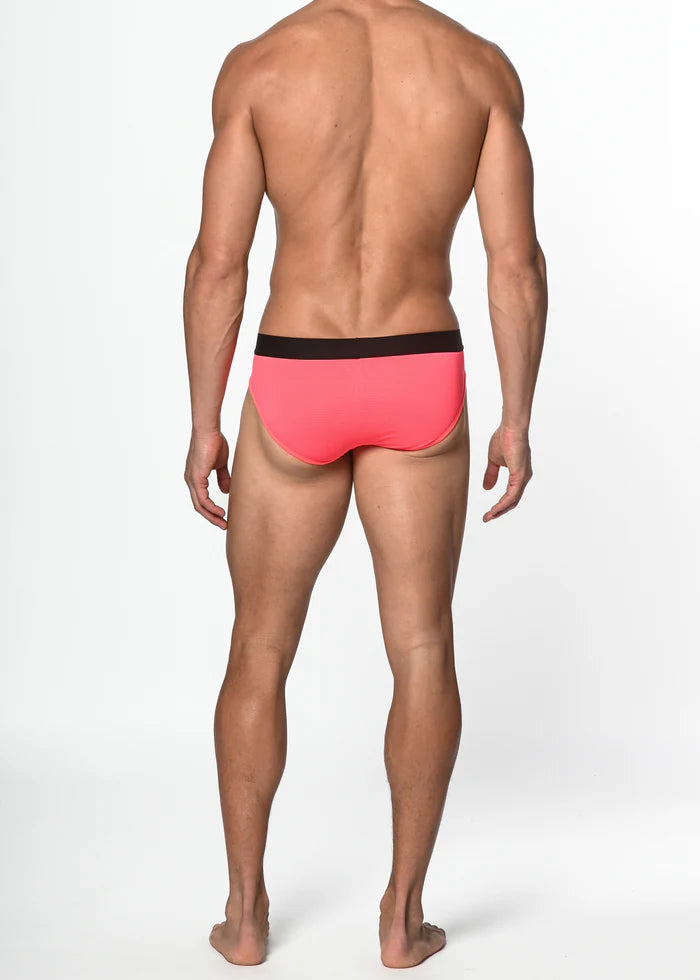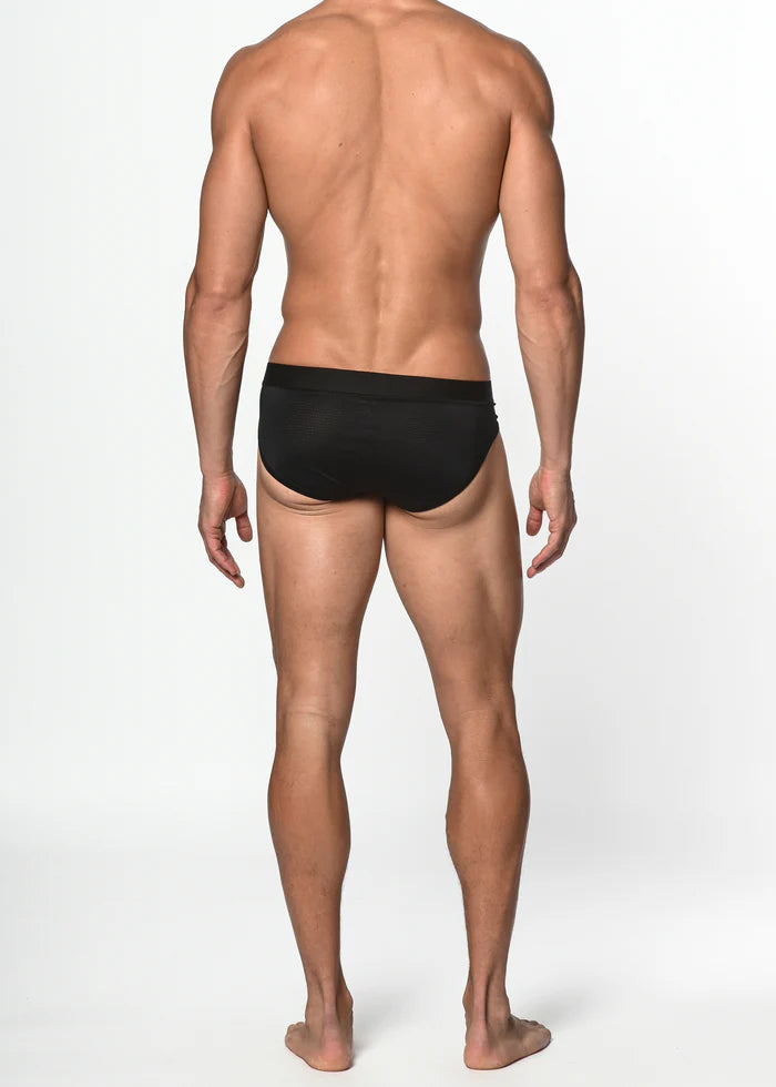 Classic air mesh sports low rise brief with front pouch lining, seamless sides and back, and black, no-roll, signature elastic waistband that stays in place, ensuring a snug yet comfortable fit throughout the day. Relaxed leg binding with flatlock stitching lie smoothly against the skin, providing an irritation-free experience. Fabricated from a nylon and elastane air mesh fabric, providing silk-like softness and breathability with a lot of stretch for a perfect fit and optimized mobility.