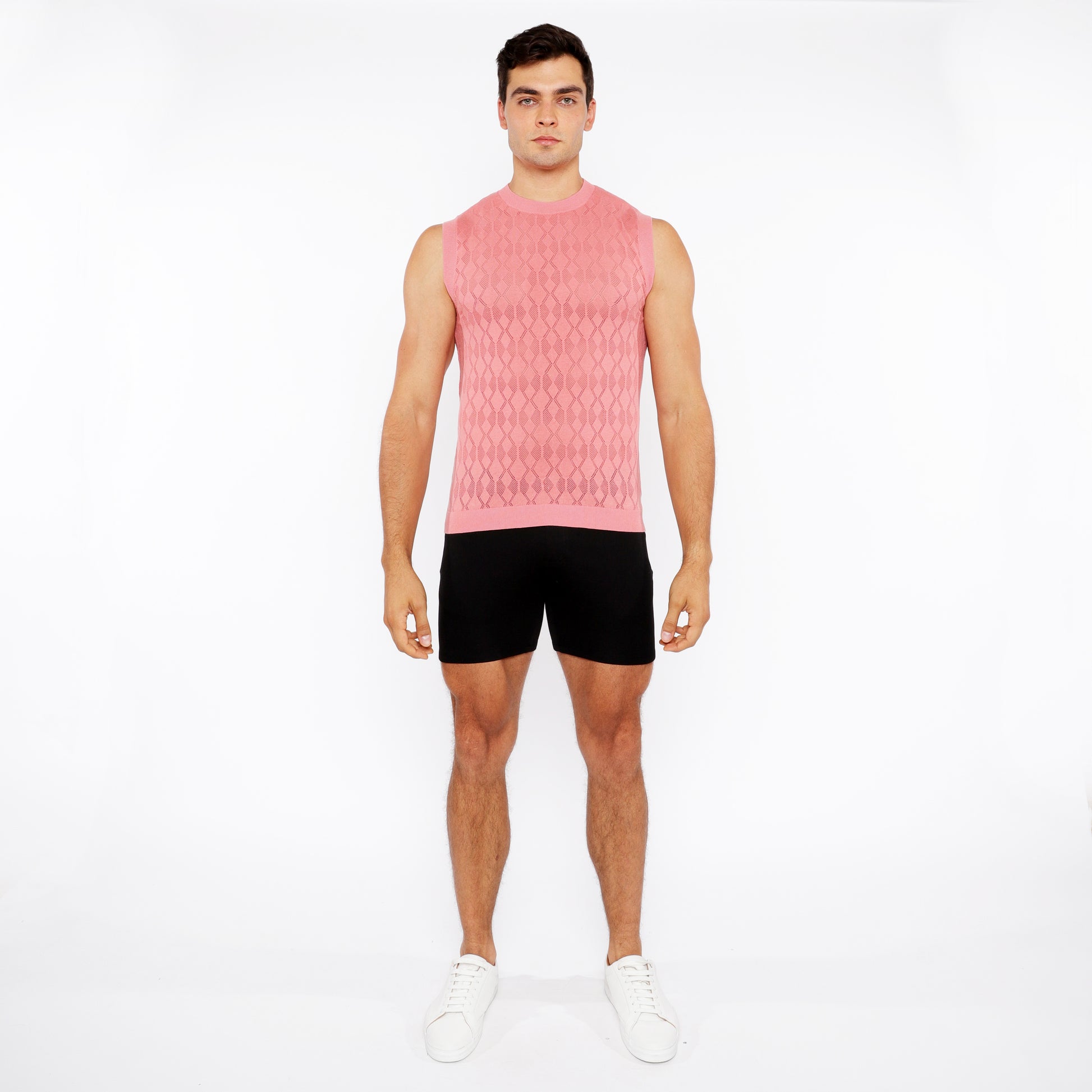 St33le Peach Amber Diamond Pointelle Knitted Vest