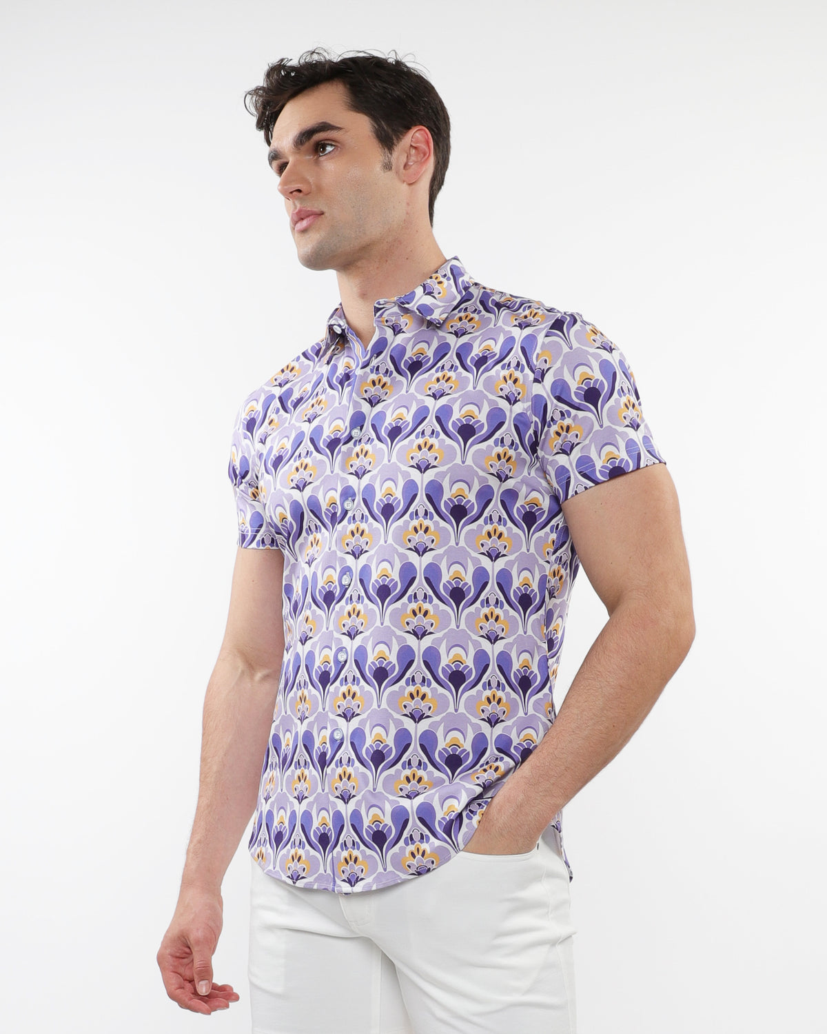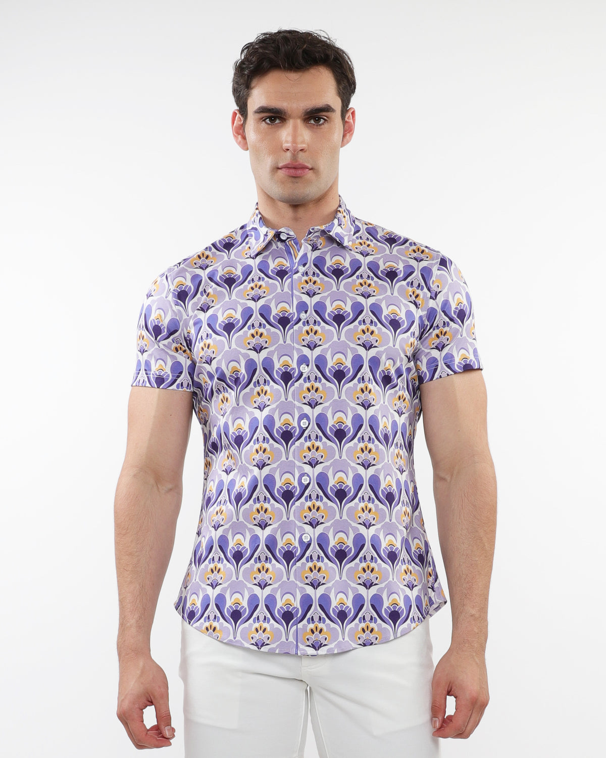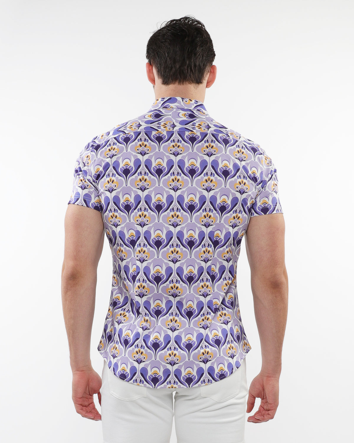 This short sleeve essential brings together the elegance of a tailored shirt with the visual appeal of a standout floral print. Slim through the shoulders, chest, and biceps, it features subtle back darts for a clean, tapered silhouette that flatters from every angle.