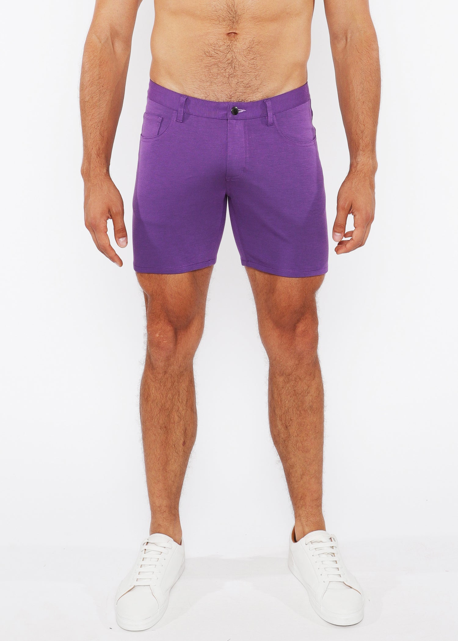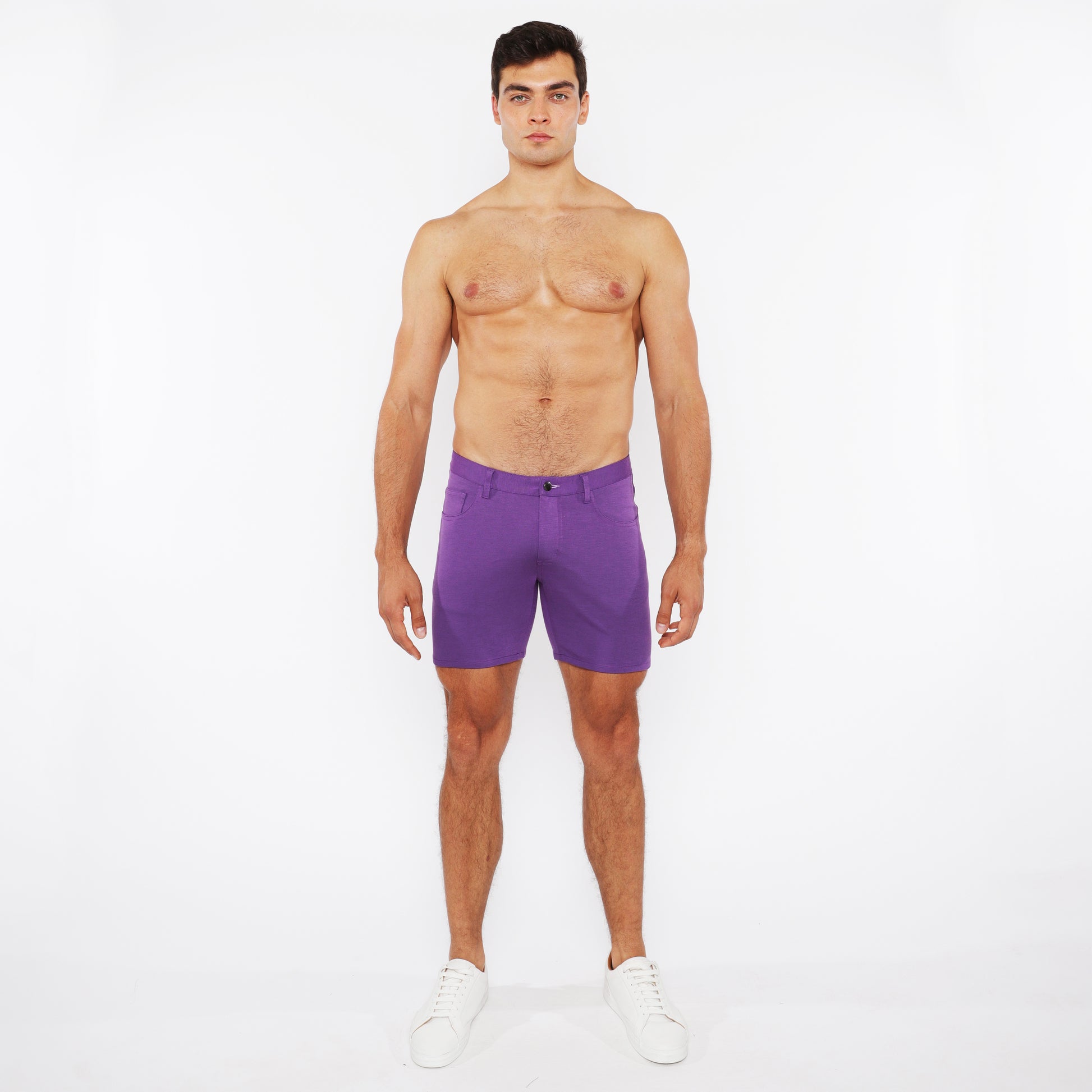 Our best-selling 5-pocket jean short redefines comfort and style with ultra-soft, 4-way stretch knit fabric. Tailored with a slim cut and a modern 5" inseam, it delivers a clean, sculpted silhouette that enhances the body’s natural shape. The contoured seat is engineered to lift and define, creating a flattering, streamlined fit that moves with you.