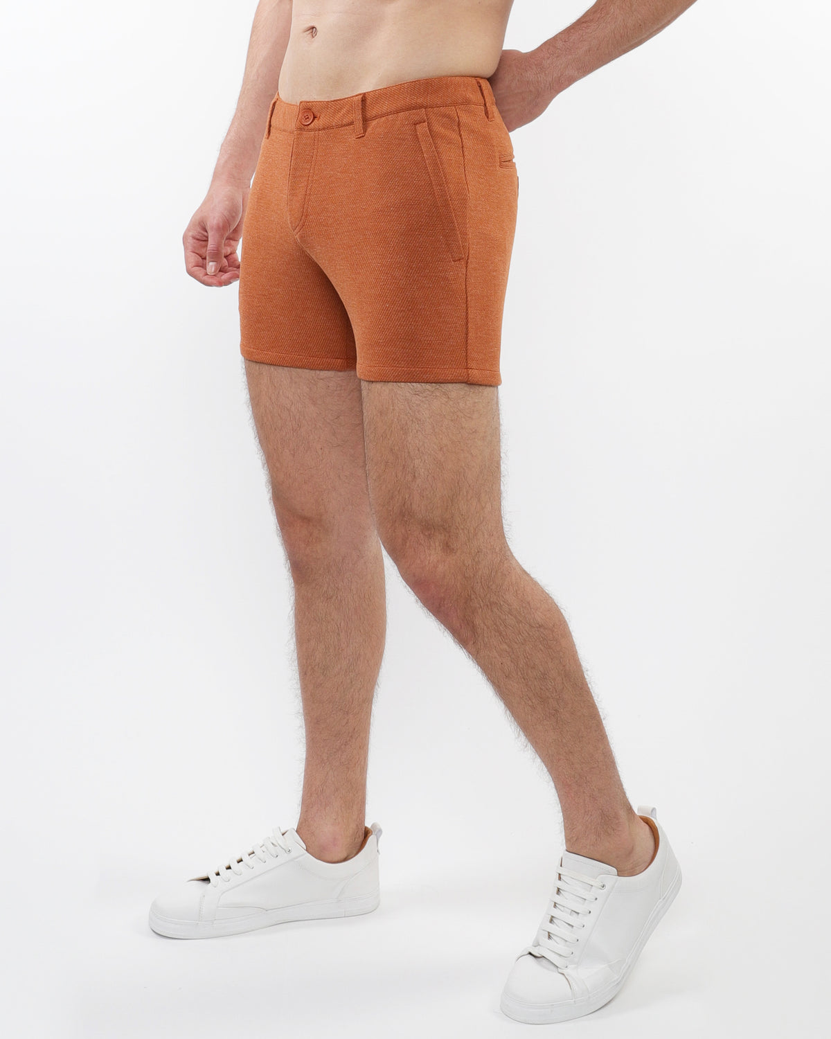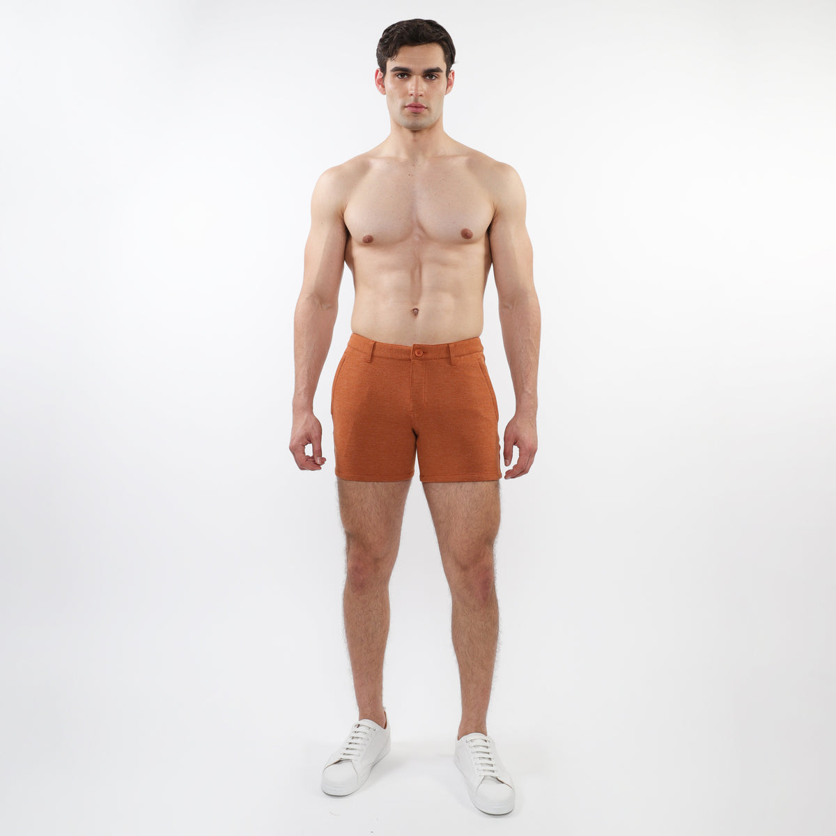 Our slim-cut chino shorts deliver a modern take on a classic staple — reimagined in a soft, tonal stretch knit that moves with you and maintains its sharp silhouette wear after wear. Designed with a tailored fit and a flattering 5" inseam, these shorts strike the ideal balance between elevated and effortless.