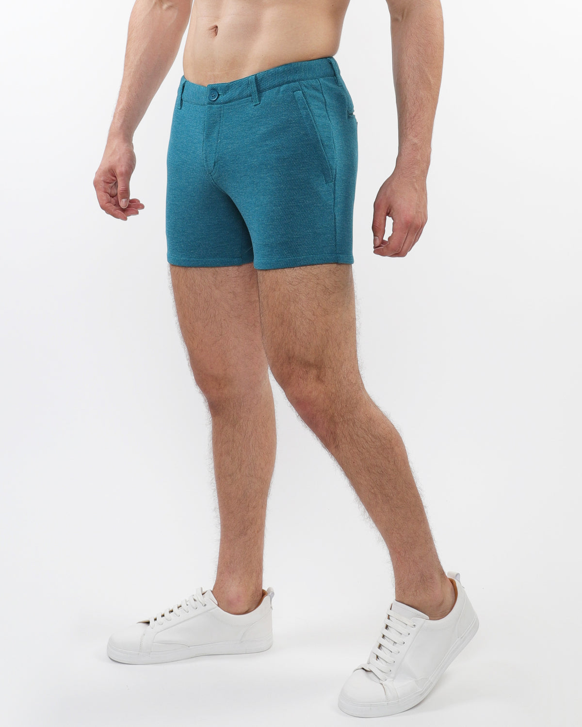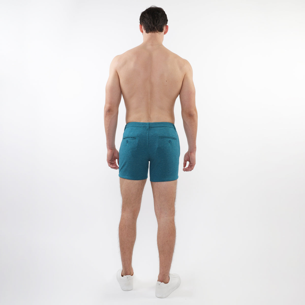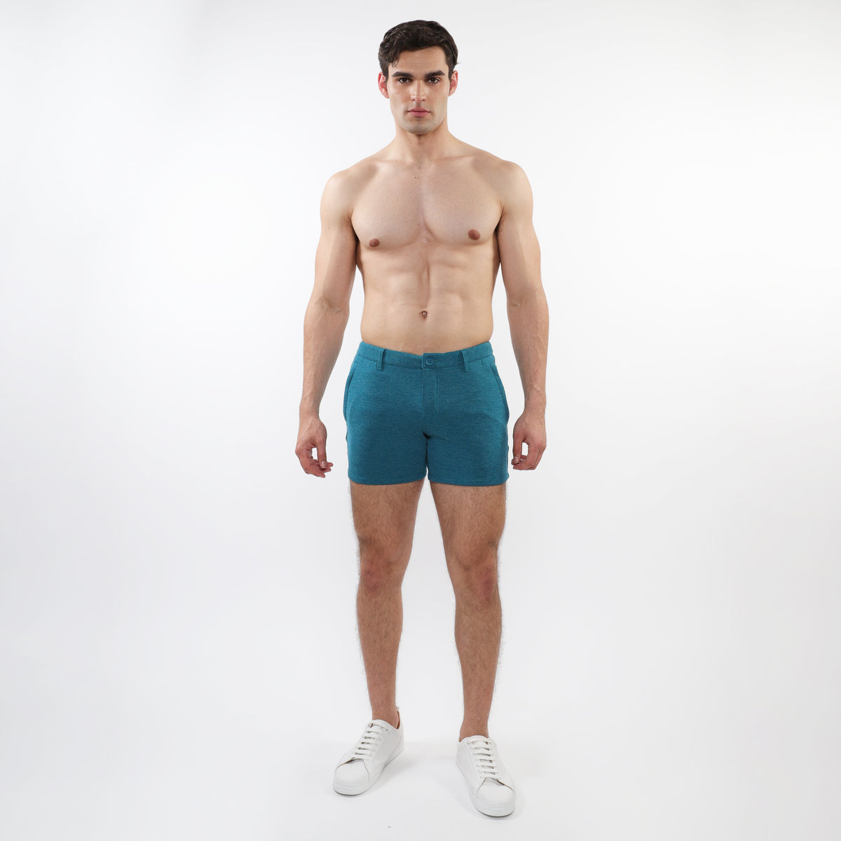 Our slim-cut chino shorts deliver a modern take on a classic staple — reimagined in a soft, tonal stretch knit that moves with you and maintains its sharp silhouette wear after wear. Designed with a tailored fit and a flattering 5" inseam, these shorts strike the ideal balance between elevated and effortless.