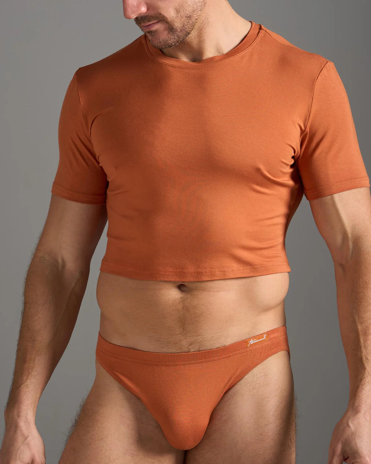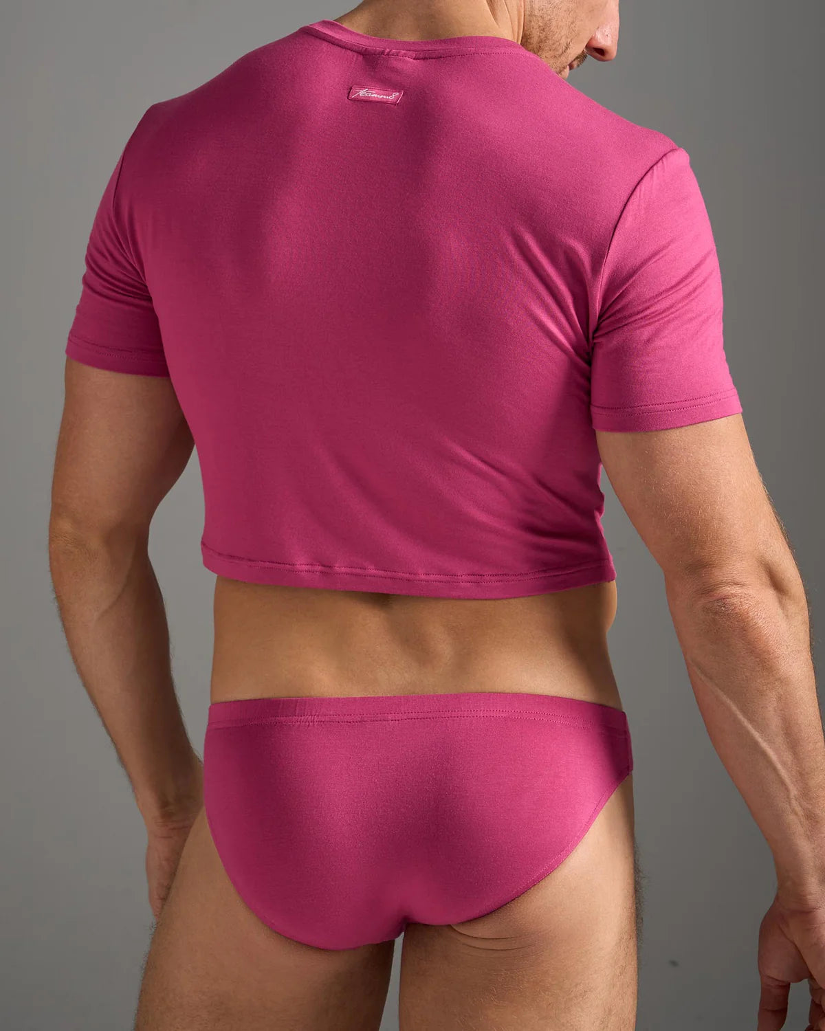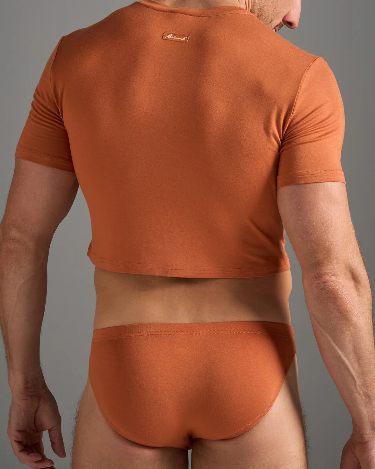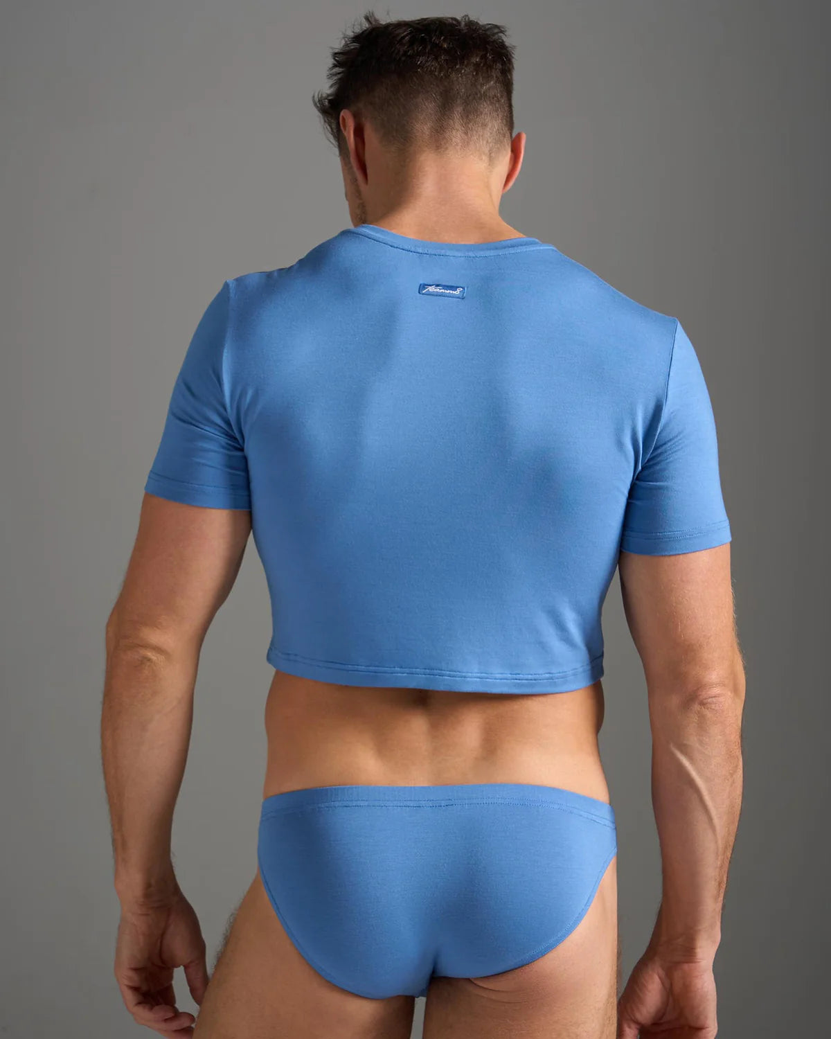 When the fit, fabric and style is flawless, all you need to add is your Body. The feeling of this Bamboo collection of mens underwear and loungewear against your skin needs to be felt to be believed. Not only is the Bamboo softer than silk, it’s anti-bacterial and heat regulating. Fusing comfort with edgy fashion forward style, the Body Crop T is the perfect length, not too short, not too long. And you don’t have to just wear it around the house! Team up with your fave shorts or pants and you’re serving sexy, understated cool! A slim but relaxed fitting men's crop t-shirt with a stylish signature logo patch on center back below the neck.