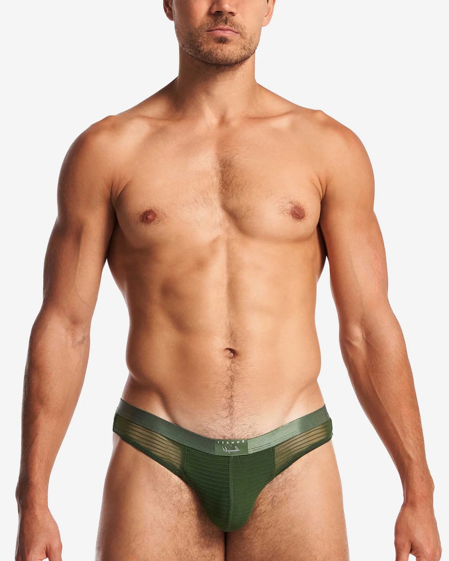Transparent, honest and sexy AF. Our exclusive collaboration with the sublime musician, model and actor MANUEL KORNISIUK takes sensuality to a whole new level. A low cut mens Thong in a sheer mesh fabric with a self stripe and a thin waistband designed to team up with the perfectly matched MANUEL Tank.