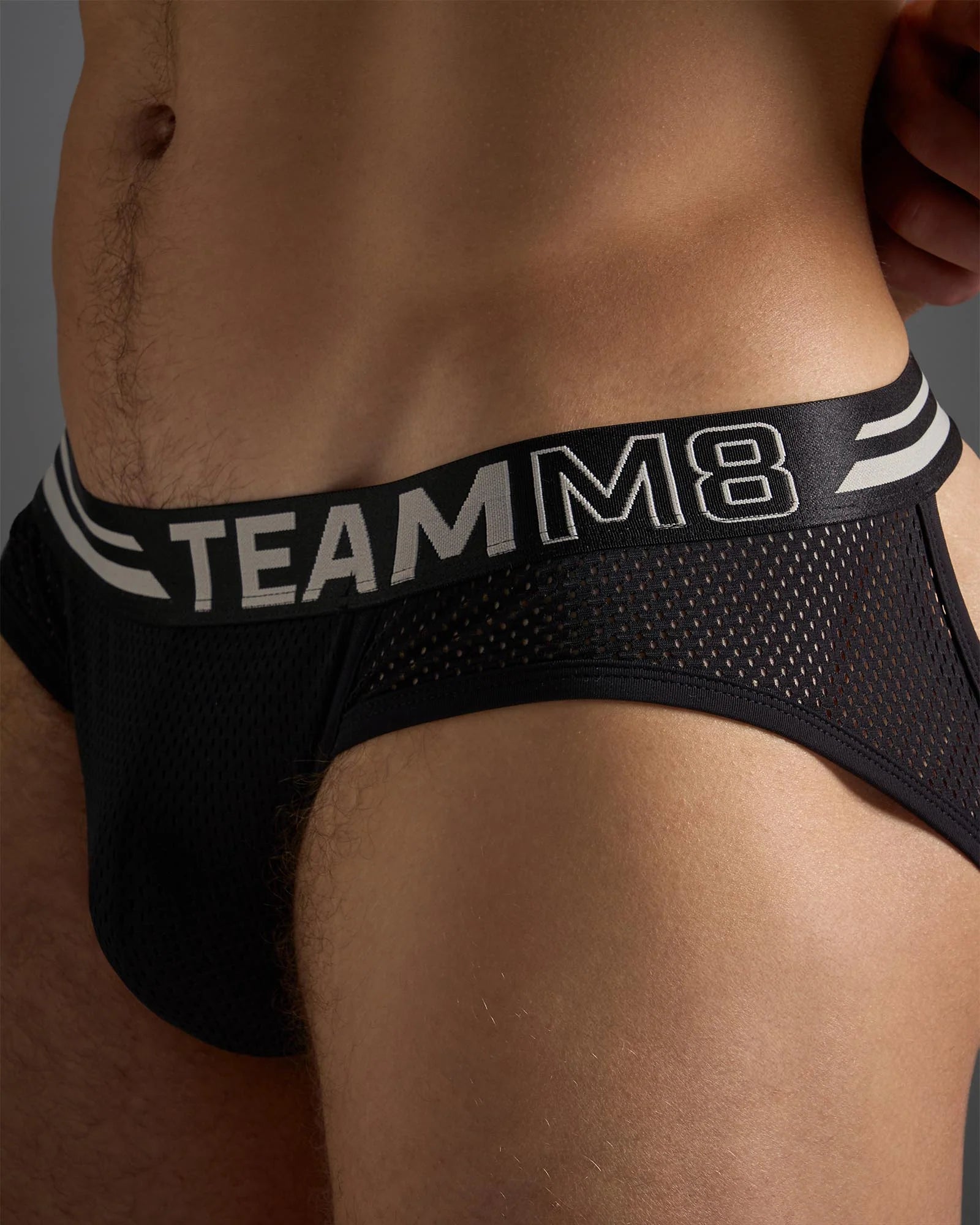 Ready, set, GO! Get those motors revving and WIN in the hot new RACER Mesh Jock. A low-rise, hipster cut jock in a stretch mesh that has a soft hand feel and luxe, subtle sheen. The metallic body coloured waistband features a contrast stripe detail with a single hip sided logo. The perforated mesh extends from the pouch and over the side to form the straps that give you superior lift, support and a jock with unsurpassed comfort! While the mesh offers great ventilation and just the right amount of see-through, the pouch has a solid fabric inner lining to offer full coverage. Racers, start your engines…