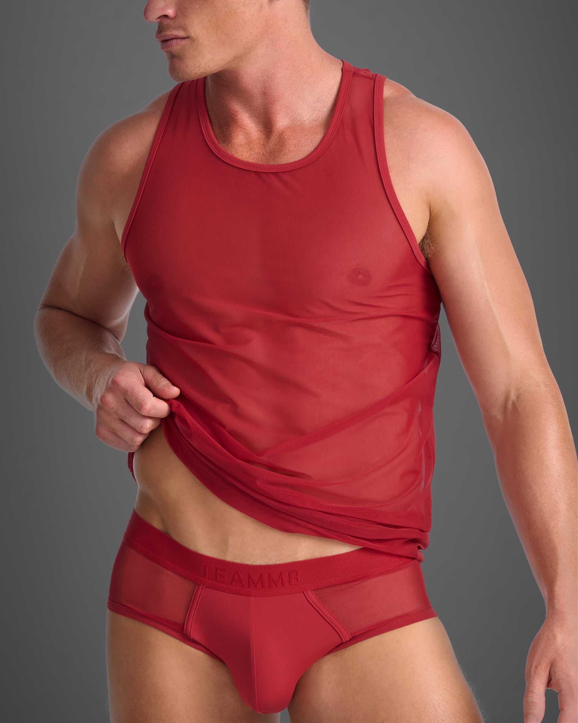 A super sexy, skin baring sheer fabric that feels luxurious to wear. Team up with the Score Sheer Brief or Score Sheer Jock for our take on a bed set that will guarantee you look and feel spicy hot for that special someone, or for yourself!