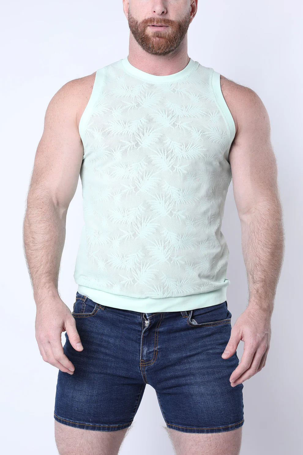 Elevate your wardrobe with the Amalfi Tank Top, a modern essential that blends effortless style and ultimate comfort. Crafted from a high-quality polyester-spandex blend, this tank top offers a breathable and lightweight feel, perfect for year-round wear. Featuring tonal banding on the arms and hem, it delivers a refined finish that adds a touch of sophistication. The minimalist design ensures a relaxed fit, while the laser mesh palm leaf detail creates a chic, almost see-through effect for added breathability and visual appeal. Whether worn on its own or layered with your favorite pieces, the Amalfi Tank Top is your go-to for both style and comfort.