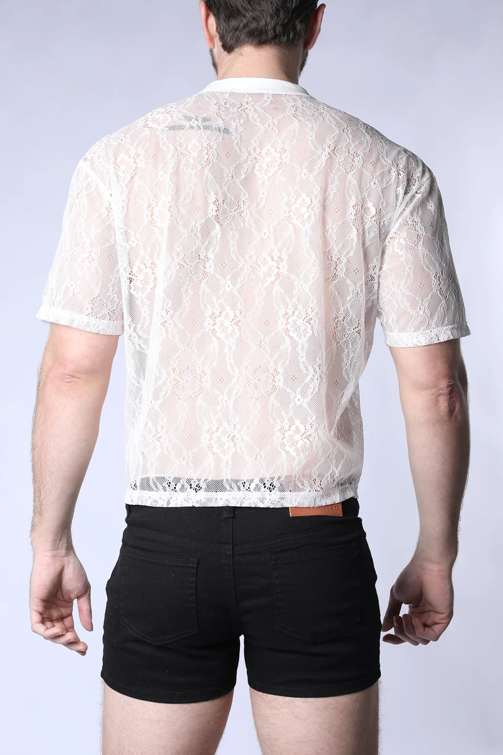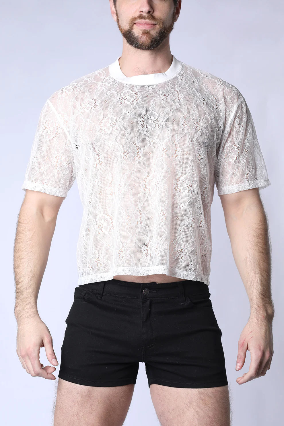 Make a bold statement with the ALL-NEW Positano Lace Cropped Tee—crafted from soft, lightweight, and stretchy floral lace for an effortlessly daring look. Designed with a boxy, relaxed fit and a cropped silhouette, this tee lets you show off while staying cool and comfortable.