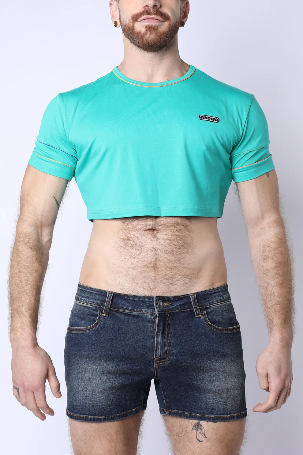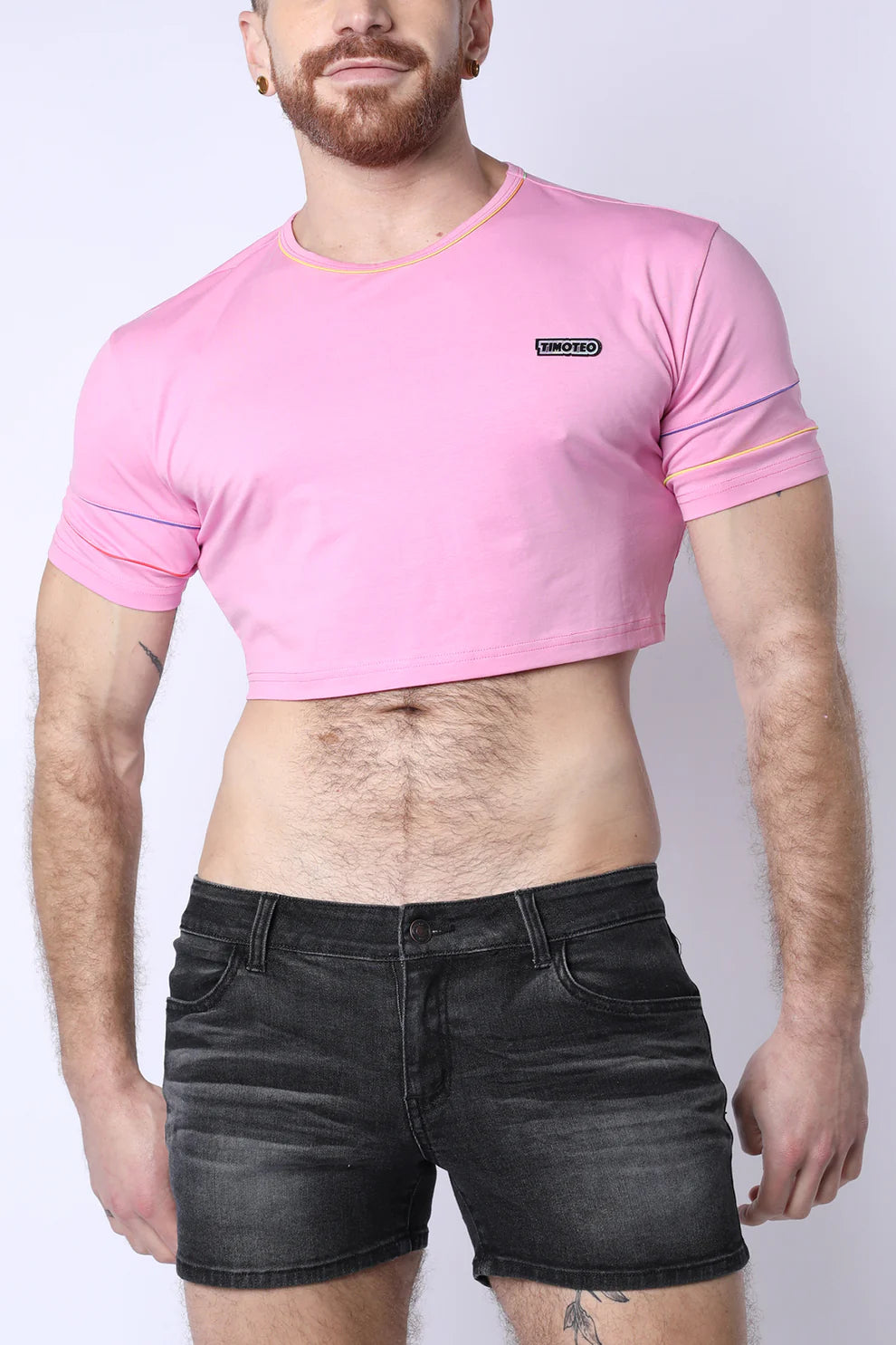 This cropped t-shirt features a vibrant rainbow Timoteo logo and rainbow piping. Crafted from super light and breathable modal cotton, it ensures you stay cool and dry. The cutoff length perfectly showcases the lower abdominals for a bold look.
