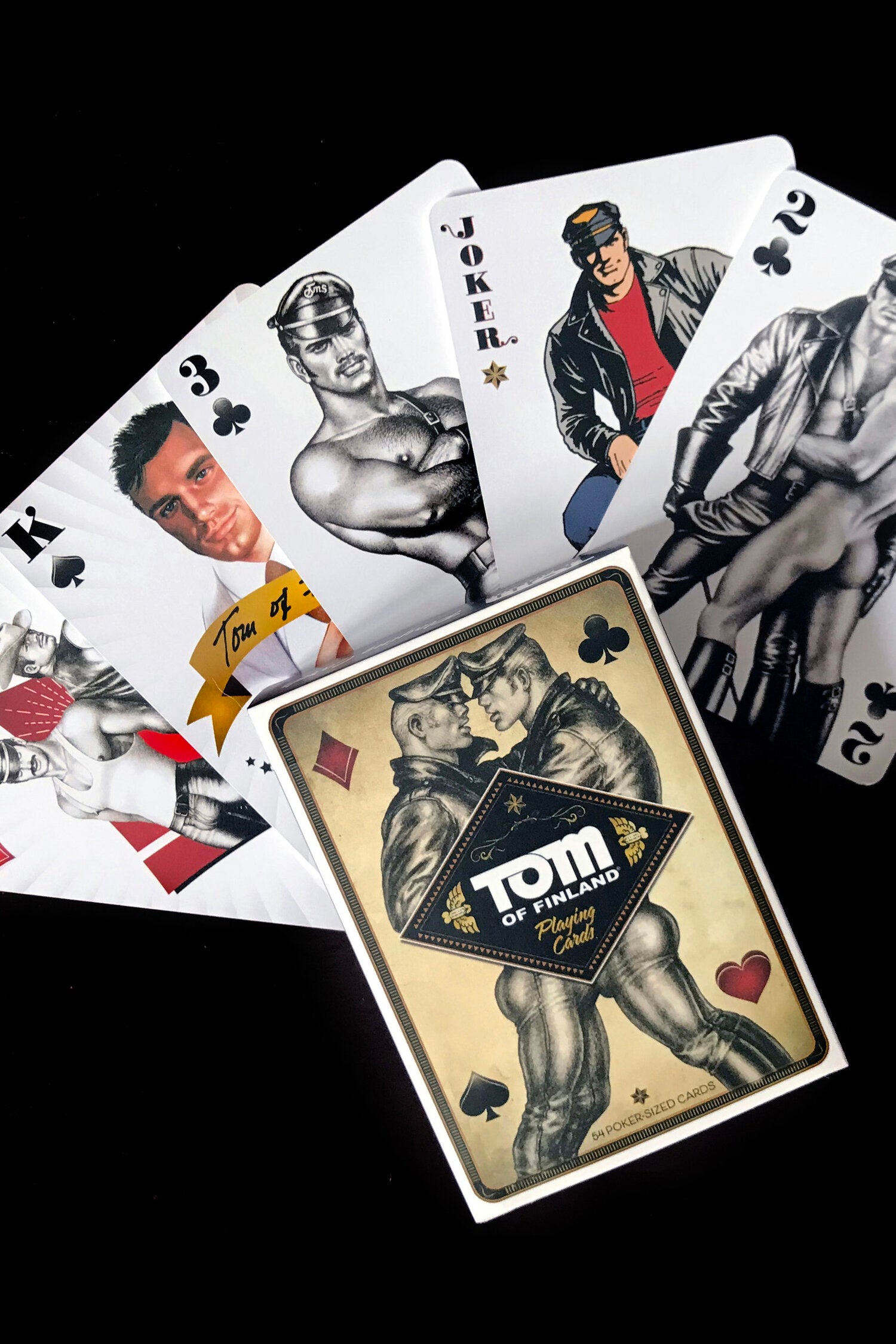 Our TOM OF FINLAND PLAYING CARDS are an instant (and sexy) classic. Tom of Finland's iconic gay illustrations have been designed into hot, stylish playing cards — with each card featuring a different Tom illustration. Get your poker face ready and bring these hunky fellas to your next game night and you'll be sure to liven up the evening! (54 cards per pack)