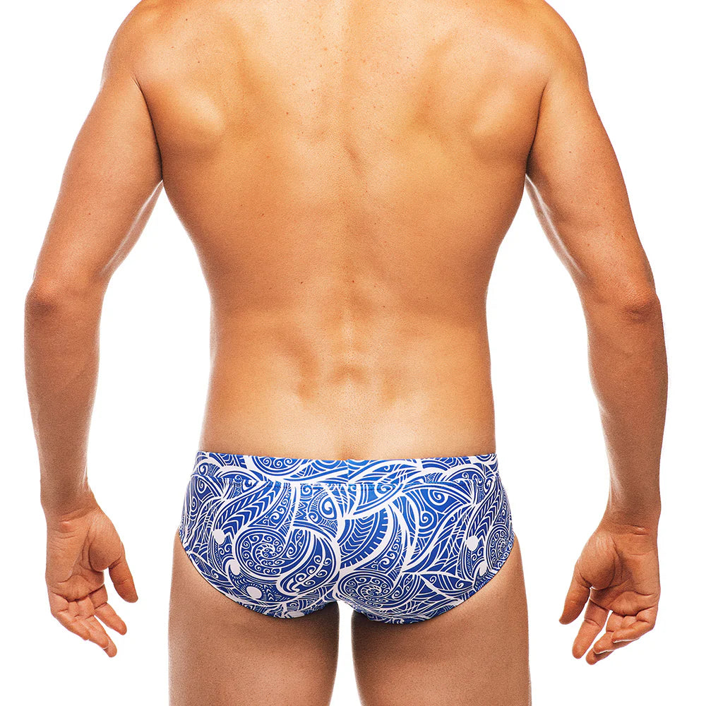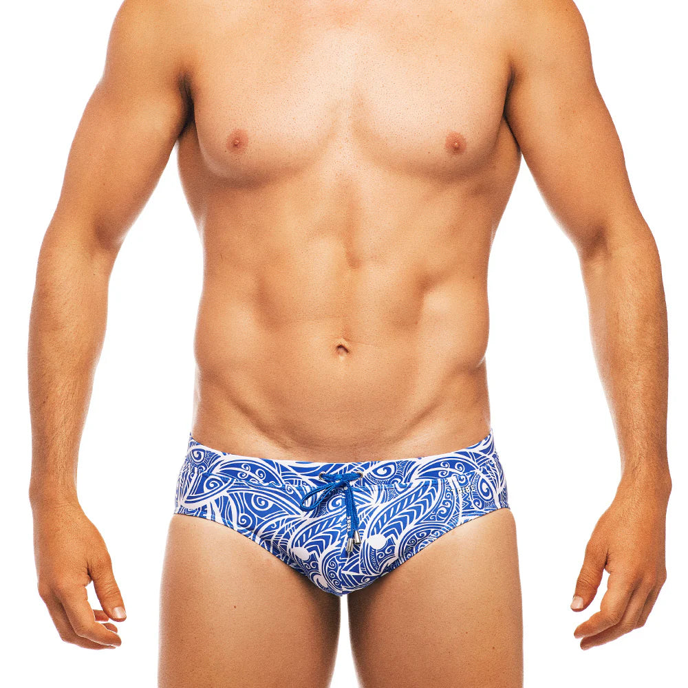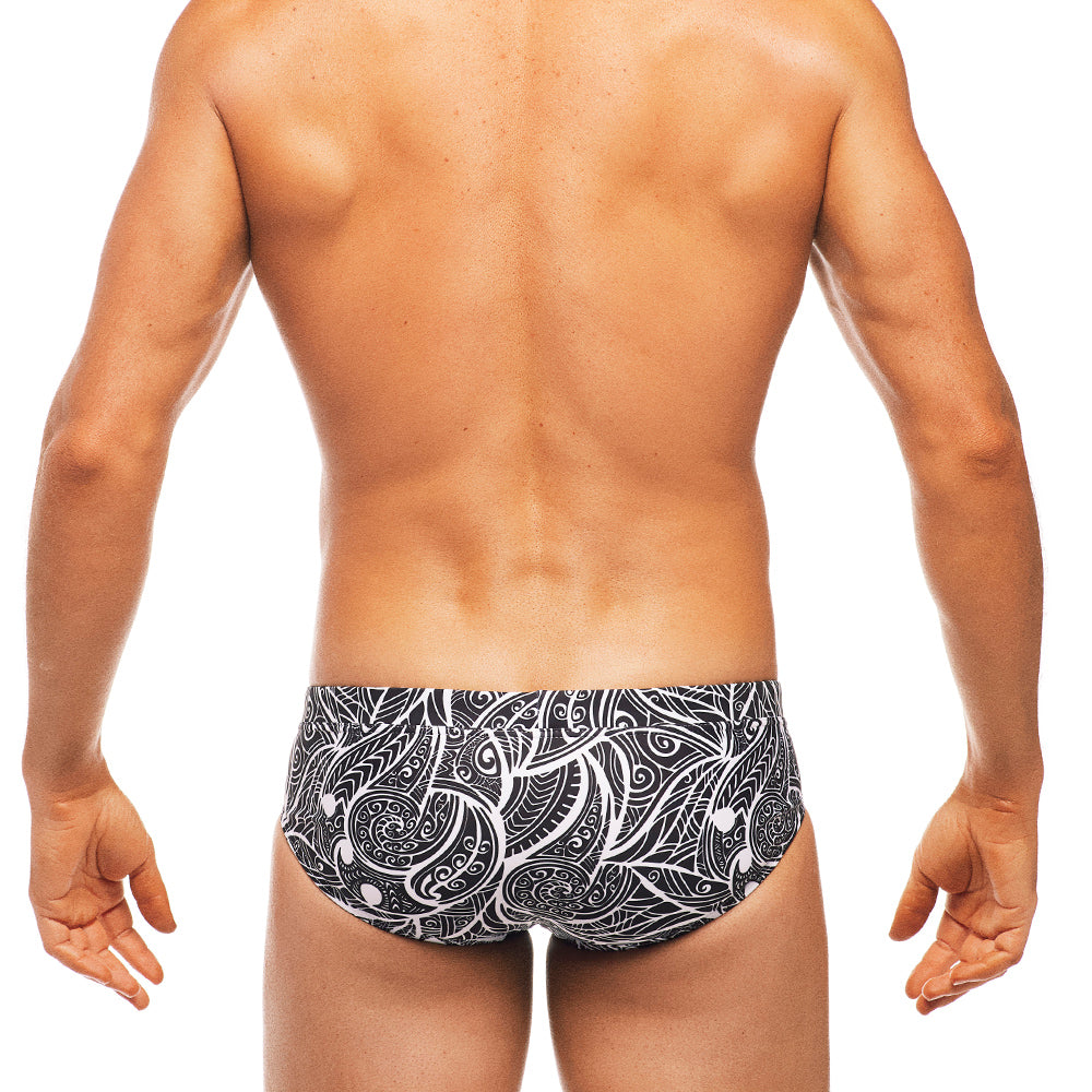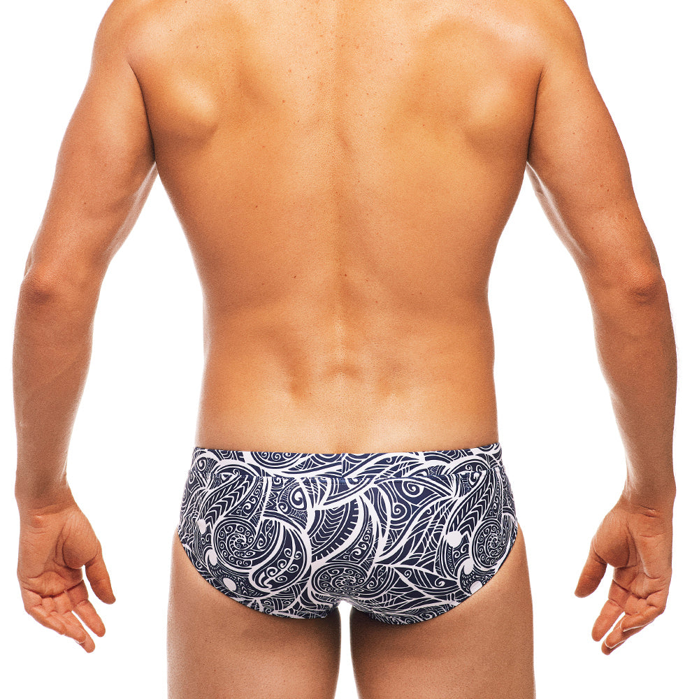 The Warrior Lo Rise Brief pays homage to the rich heritage of the South Pacific Islands, where tribal tattoos tell stories of strength, resilience, and an unbreakable warrior spirit. Inspired by these ancient markings, this print represents the unwavering perseverance of Pacific Island warriors - never backing down, always pushing forward. Every line and curve in this design pays homage to centuries of cultural significance, a testament to courage and identity.
